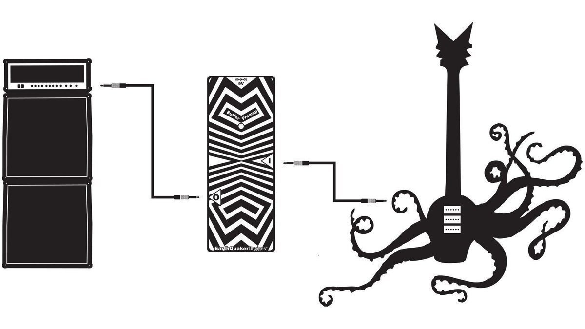 | Buffer/Preamp 質の良いバッファーの使用の重要性は、長いケーブルを引き回したりトゥルーバイパス仕様のペダルを沢山使用する人達なら承知の事実。このアースクエイカーデバイセスのBuffer/Preampは入力インピーダンスを1Mohm、出力インピーダンスを100ohmに設定し、原音の持つ元々の音質をクリアに、そしてダナミックに次の機材に繋げる仕事を約束します。高音域の保護だけで無く、しっかりとチューニングされたこのBuffer/Preampを通した信号は低音域も安定させ元の信号に躍動感も与えます。 Tech Specs 寸法94 x 46 x 46 mm 消費電流15 mA 入力インピーダンス1 MOhm 出力インピーダンス100 Ohm 電源 この製品は9V、ACアダプターで2.1mmのセンターマイナスのアダプターで使用できます。デイジーチェインやトランス方式でないパワーアダプター等の使用ではノイズが乗る事が有りますので当社では推奨しておりません。また故障の原因になりますので9Vを超える電源は使用しないでください!  |