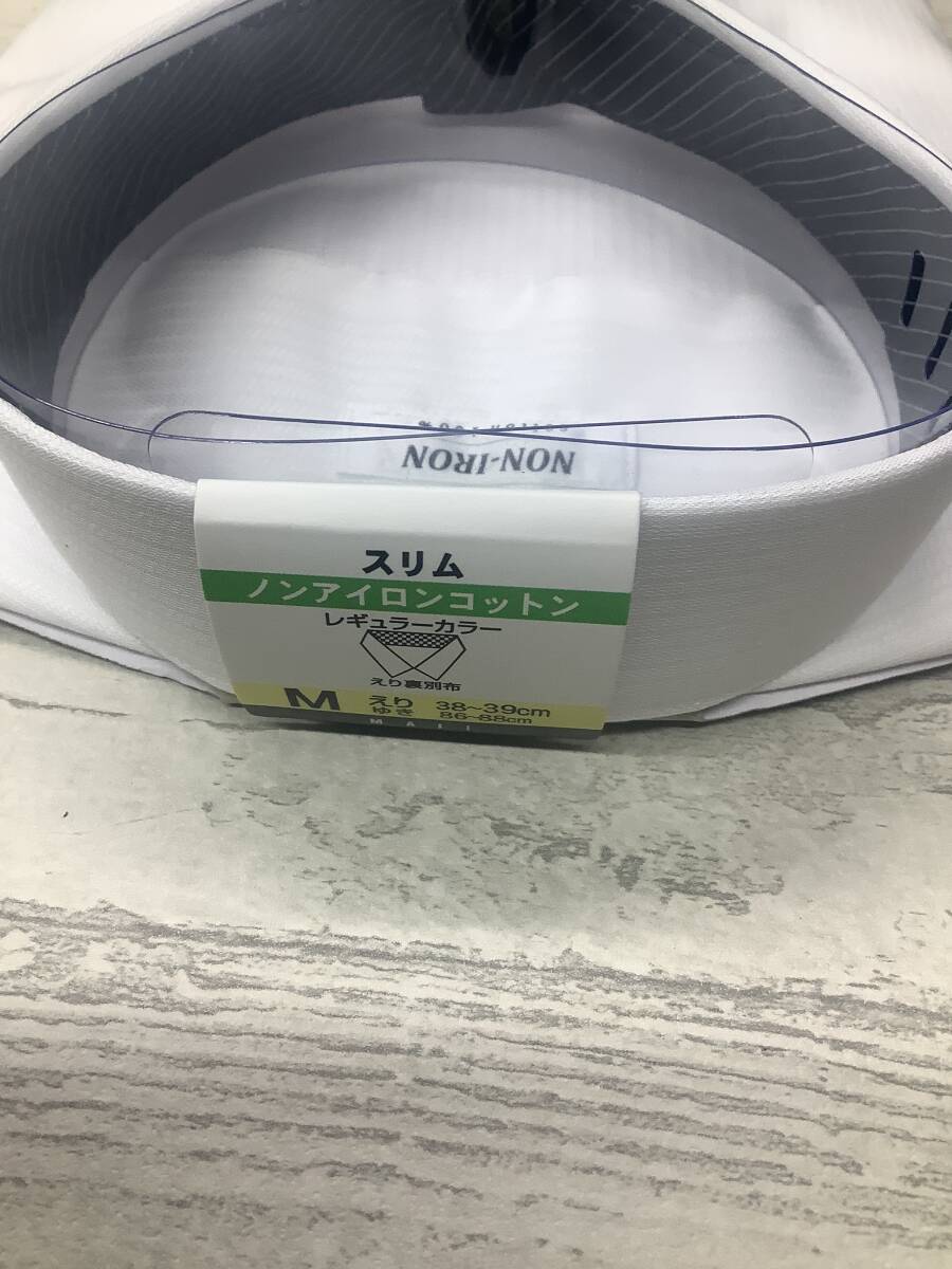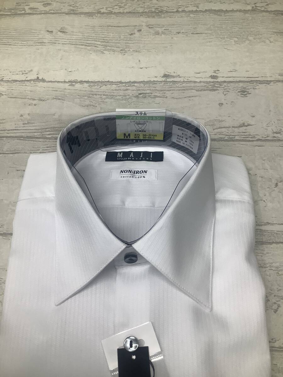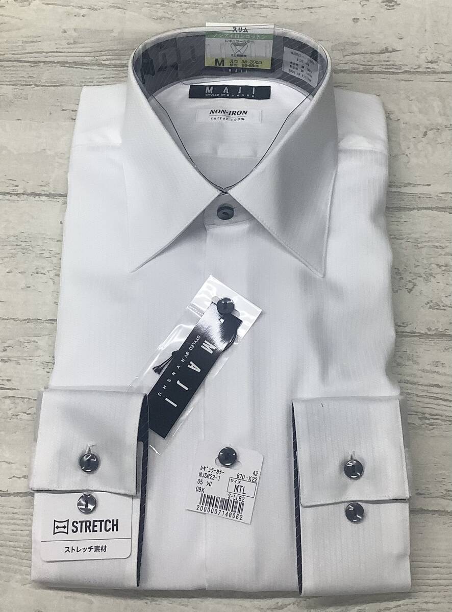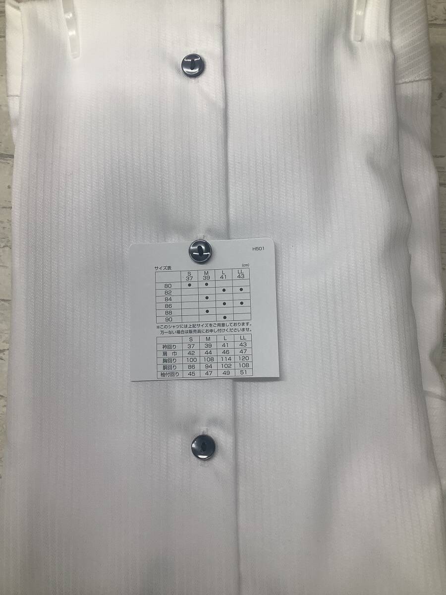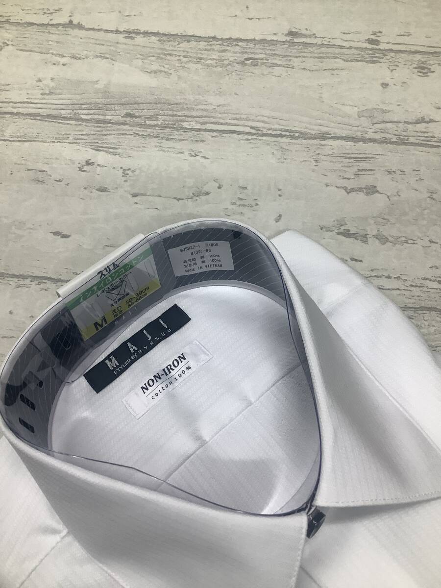 39-88 長袖Mサイズ ★白色ストライプドビー柄ジャガード生地 レギュラーカラー 定価5,990円 綿100%ドレスシャツ