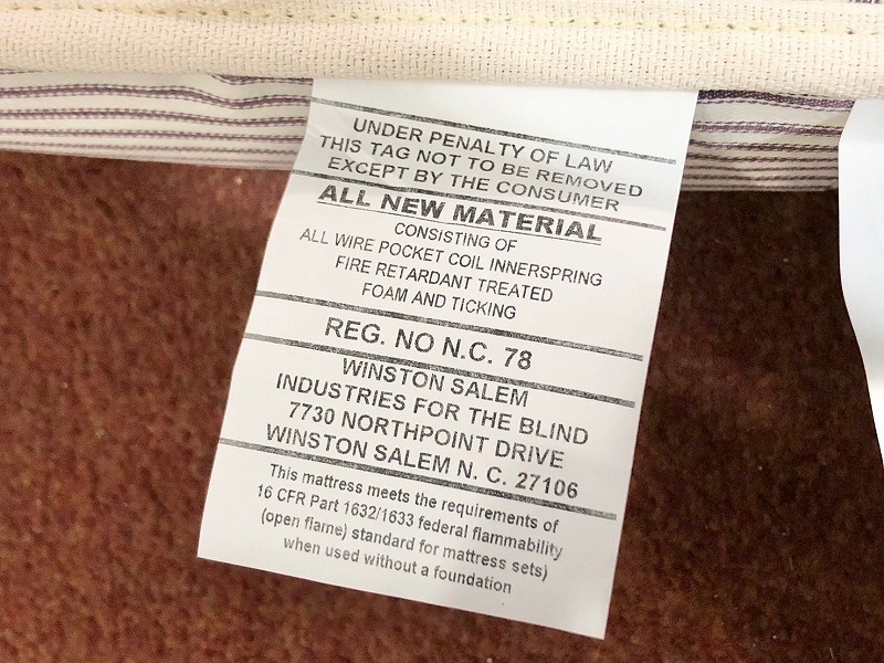 【米軍放出品】未使用品 マットレス インナースプリングマットレス 72cm×203cm セミシングル WINSTON SALEM (260)☆CE11P