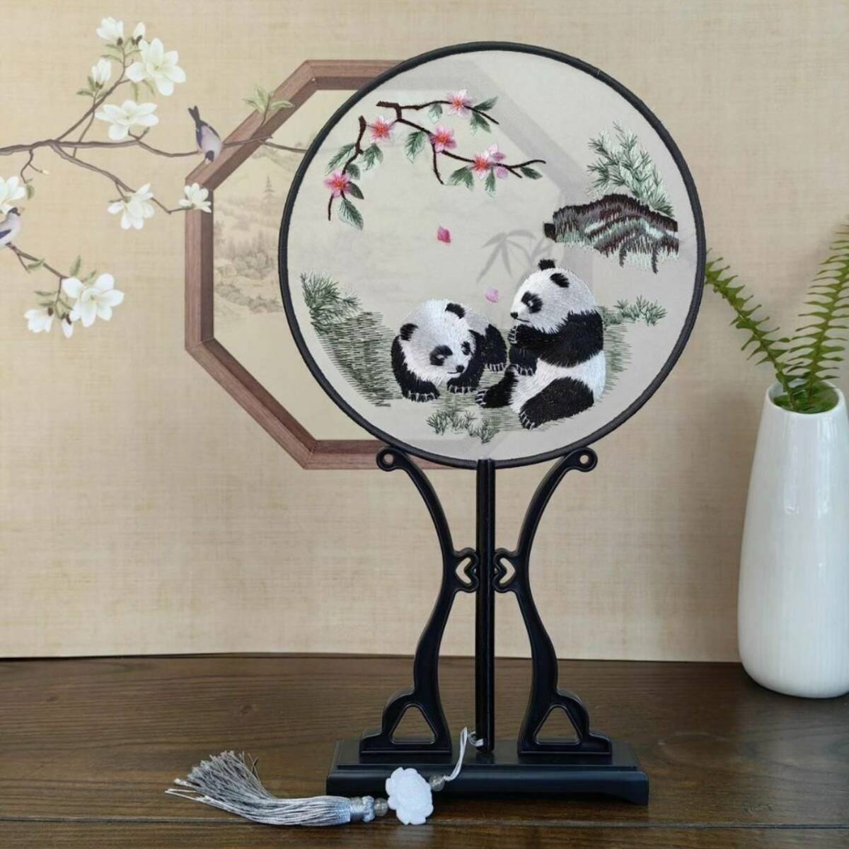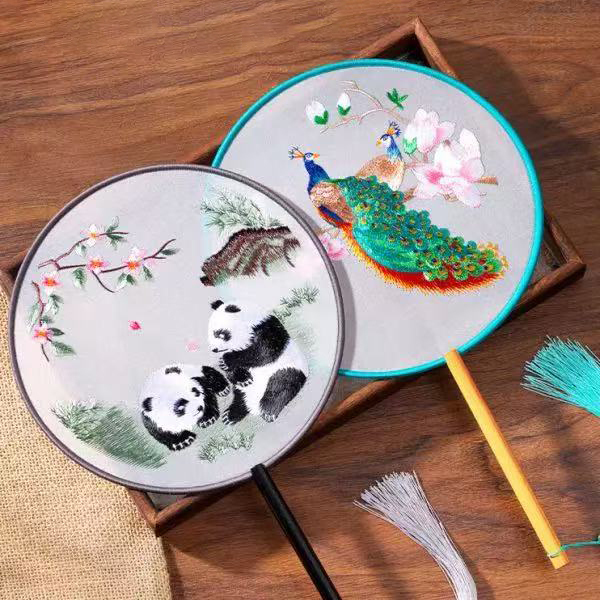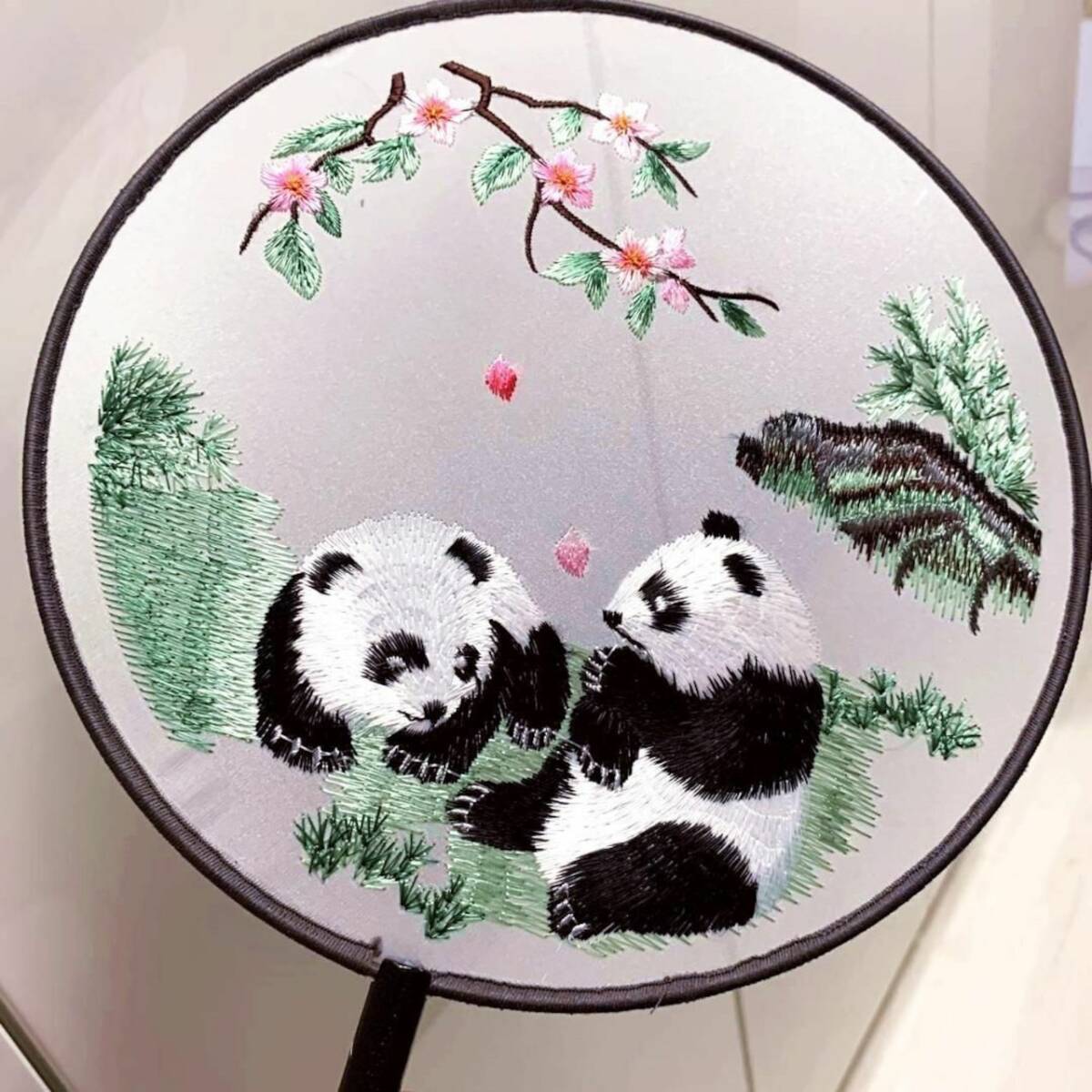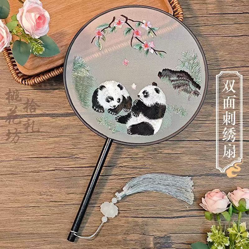 うちわ 両面刺繍 上品 花柄 団扇 和装浴衣 花火大会 お祭り パンダ兄弟