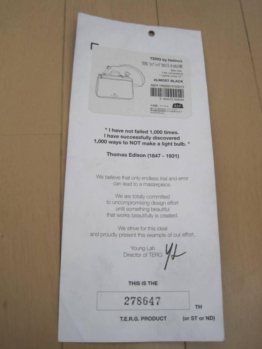 定価13,200円 ターグ TERG ラップトップクロス13 TERG by HELINOX ヘリノックスになります。数回の使用のみで特に目立つ傷、汚れはありません。ノートPCとA4サイズ書類の収納を主体にデザインされた小型ブリーフケースです。メイン室はL字型止水ジッパーで大きく開き内部アクセスが容易。サブ室は2つのポケットと2つのペンホルダー。背面には同社のマルチリンクシステムに対応したベルクロベルトが付いており、バックパック等の内部に固定することが出来ます。ショルダーストラップにはバックパックのショルダーハーネス級のクッションパッド付き。ストラップの余分な長さ部分はベルクロテープで丸めておけます。また、ストラップはスリッククリップで連結されており、未使用時にはクイックな取り外しが可能。本体とショルダーストラップの連結はワンタッチで着脱できる樹脂製バックルを採用。
