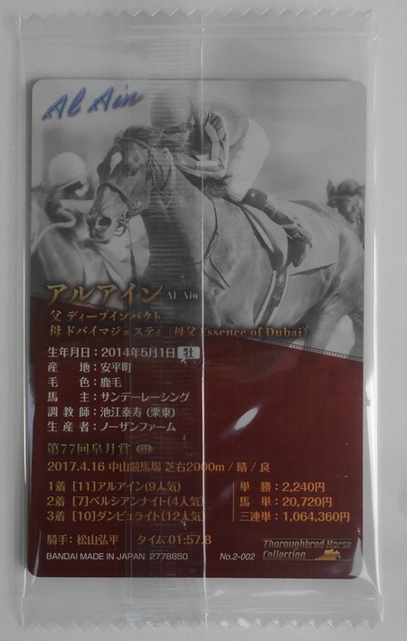 2-002 アルアイン(第77回皐月賞) 松山弘平騎手サイン サラブレッドホースコレクション ツインウエハース 第2R