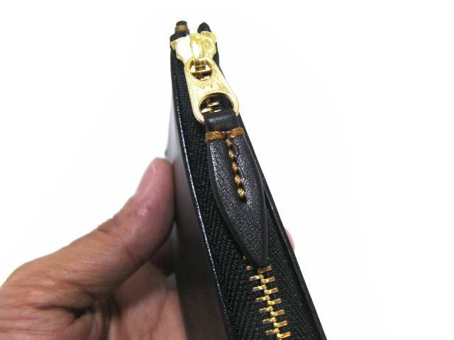 L字ファスナーのデザインにより、開閉がスムーズで中身の出し入れが簡単です。背面には便利なカード入れがあり、薄型ながらしっかりとした収納力が魅力の一品です。