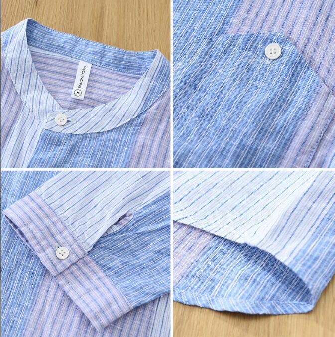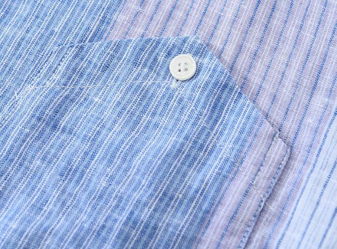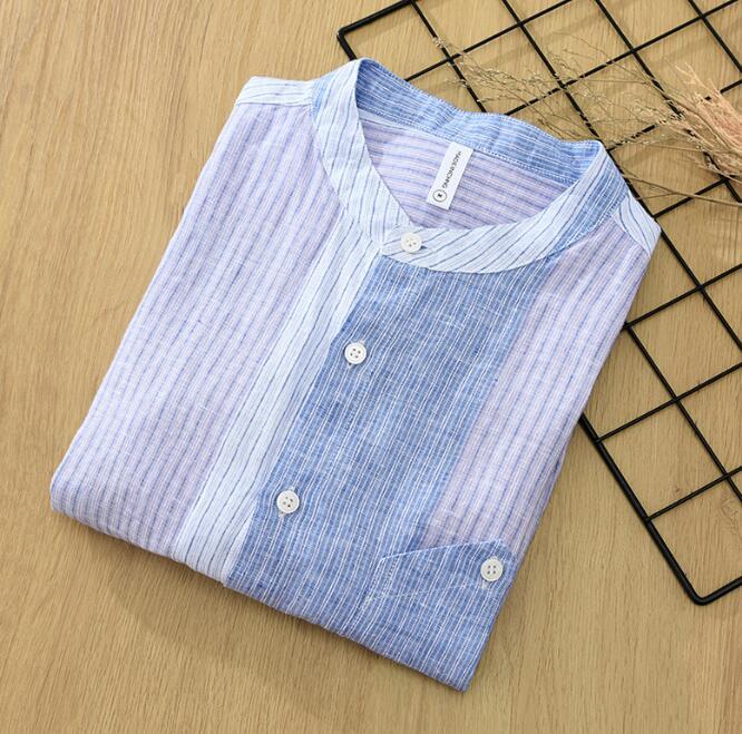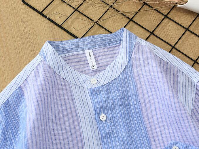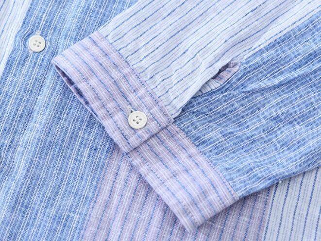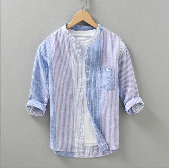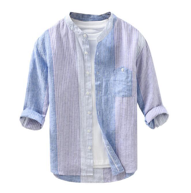 新入荷新作七分袖シャツ メンズ ストライプ柄切替リネンシャツ メンズシャツ 麻100%トップスTシャツ 薄手 紳士カジュアル 春夏 清涼感 XL