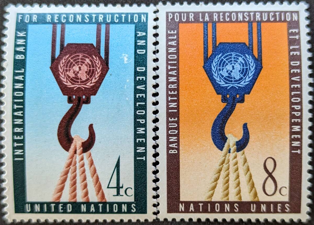 【外国切手】 ニューヨーク国際連合本部ビル 1960年12月09日 発行 国際復興開発銀行「世界銀行」 未使用 2種完