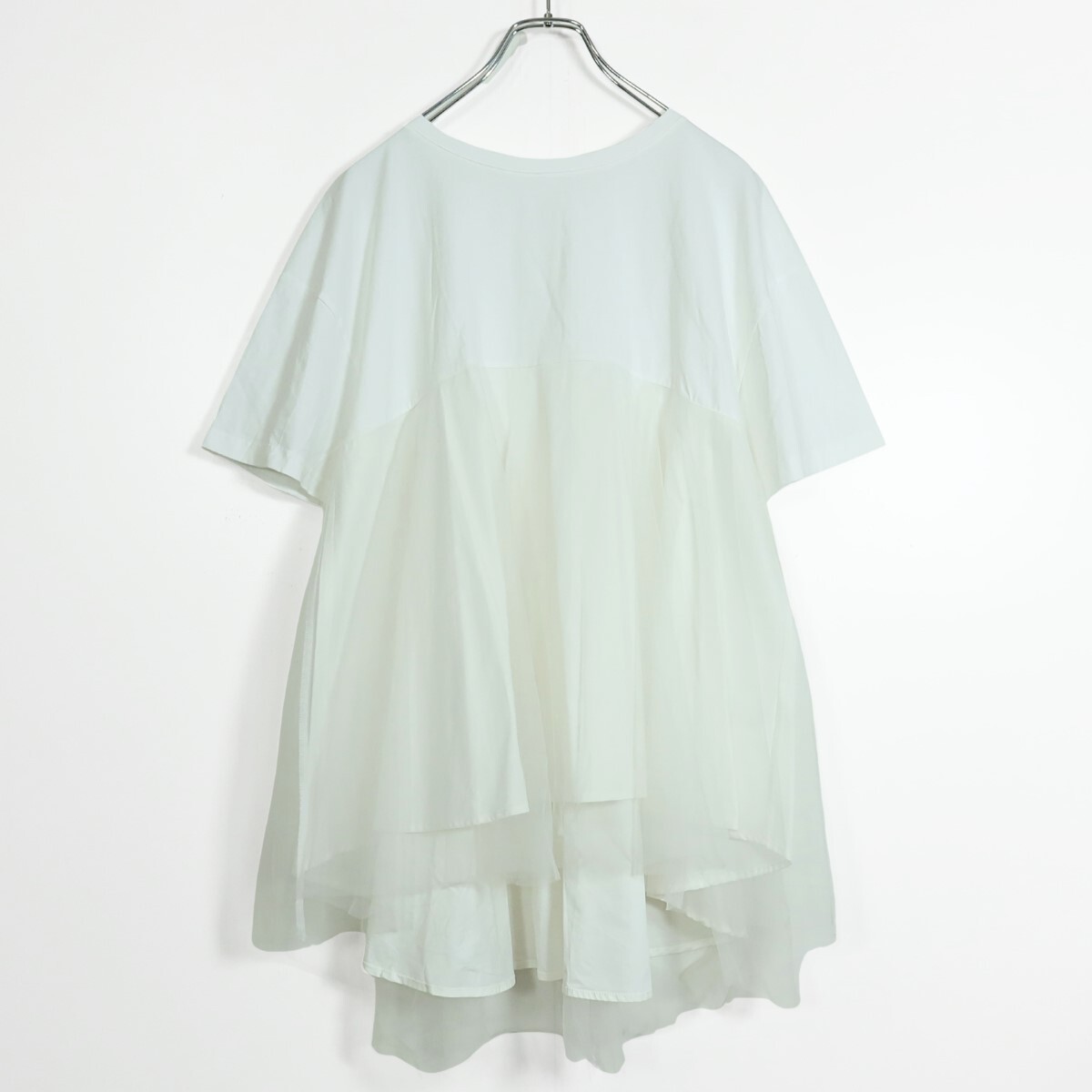 商品説明 | 【実寸約】裄丈49バスト104着丈78 (cm) 【サイズ表記】 F 【素材】 本体:コットン100 【状態】使用感少なめの美品 【デザイン】ホワイト系 バストから下にチュールレースがついた半袖カットソーです。 薄手/無地 |