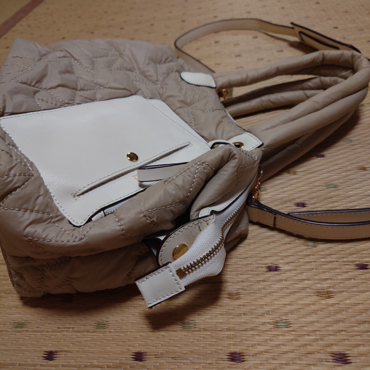 サンヒデアキミハラ 2wayトートバッグ ベージュ×白