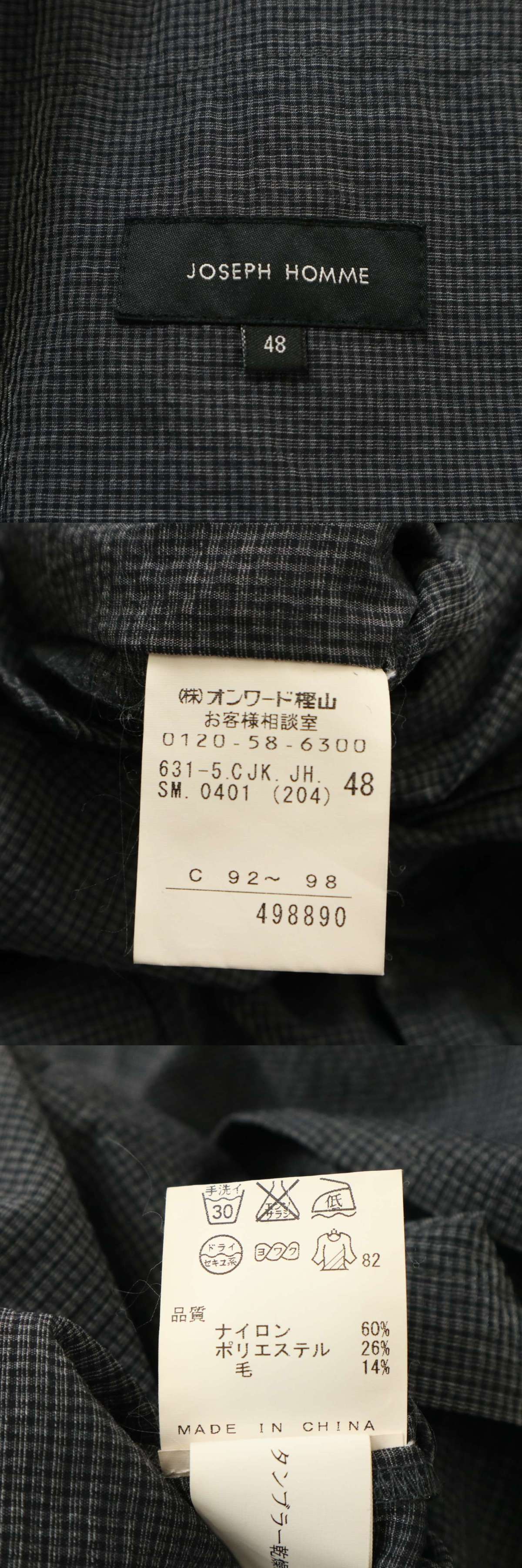 JOSEPH HOMME ジョセフ オム 春夏★ チェック アンコン テーラード ジャケット Sz.48 メンズ 灰