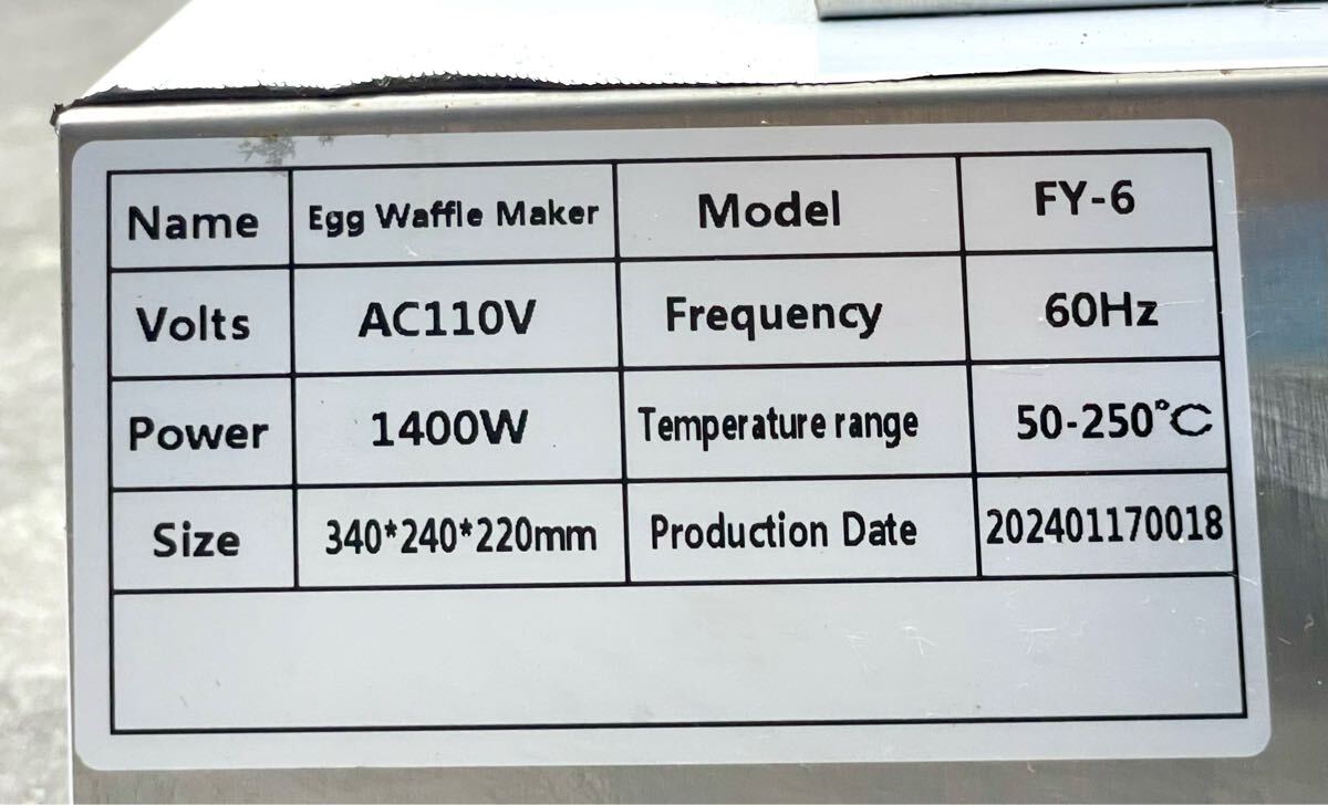 動作品■Egg Waffle Maker エッグワッフルメーカー FY-6 ワッフルメーカー ベビーカステラ 業務用 厨房機器■兵庫県姫路市から 25-3222