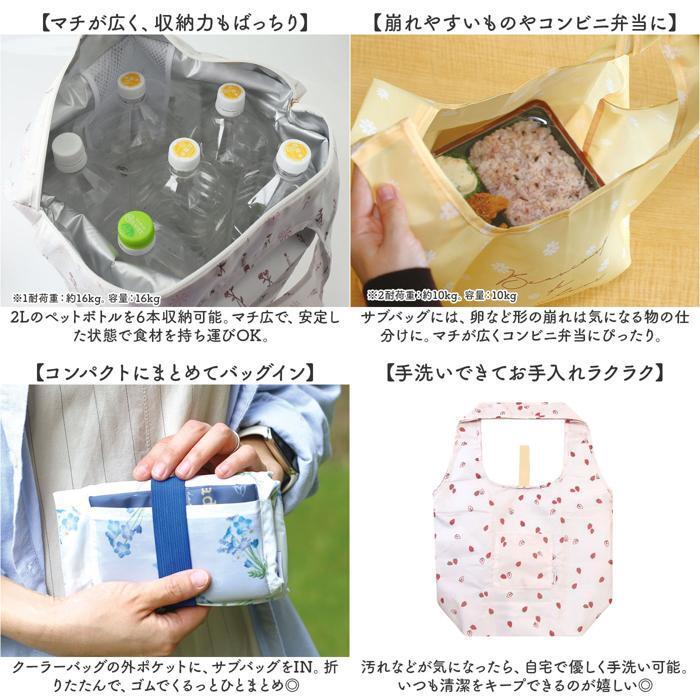 | 商品説明 | ・・【仕分けOK!お買い物する日の味方】 ・用途に応じて使い分け♪いつでも持ち歩けるリンクトートに、クーラーバッグタイプが仲間入り! ・【たくさんお買い物しても大丈夫】 ・メインのクーラーバッグに加え、サブバッグが付属。合わせて携帯すれば荷物が増えても安心。 ・【肩掛けできてストレスフリー】 ・クーラーバッグのハンドルは、肩掛けできる長さ。沢山お買い物した日も持ち運びがラクラク。 ・【開閉スムーズ、安心のファスナー式】 ・ガバっと開いて取り出しやすく、ファスナーを閉じれば中身の飛び出しをガード。 ・【簡易保冷効果で持ち運びも安心】 ・内側は断熱効果のある、シルバーコーティング仕様。冷蔵食品などの持ち運びに最適。 ・【保冷材を入れて、保冷効果アップ】 ・内側メッシュポケットに保冷剤を。バッグのファスナーを閉めれば、冷気を逃さない! ・【マチが広く、収納力もばっちり】 ・・2Lのペットボトルを6本収納可能。マチ広で、安定した状態で食材を持ち運びOK。 ・(※1)耐荷重:約16kg。容量:16kg ・【崩れやすいものやコンビニ弁当に】 ・サブバッグには、卵など形の崩れは気になる物の仕分けに。マチが広くコンビニ弁当にぴったり。 ・(※2)耐荷重:約10kg。容量:10kg ・【コンパクトにまとめてバッグイン】 ・クーラーバッグの外ポケットに、サブバッグをIN。折りたたんで、ゴムでくるっとひとまとめ◎ ・【手洗いできてお手入れラクラク】 ・汚れなどが気になったら、自宅で優しく手洗い可能。いつも清潔をキープできるのが嬉しい◎ ・【ナチュラルで可愛らしいデザイン】 ・コーデのワンポイントにもなるプリント柄をラインナップ。贈り物にもおすすめ。 ・【ポケット仕様】 ・クーラーバッグ内側:メッシュポケット×1 ・クーラーバッグ外側:オープンポケット×1 |