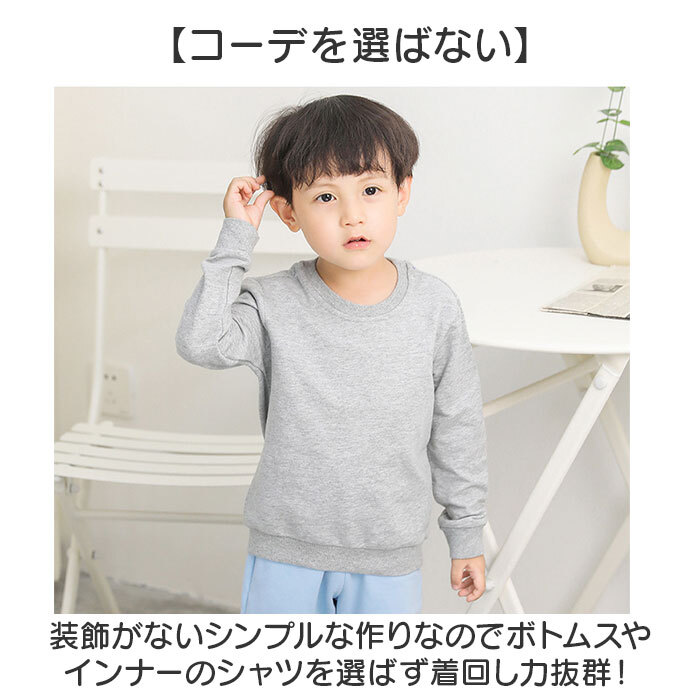 商品説明 | ・・【定番スタイルがうれしい】 ・様々なコーデに合う定番スタイル♪キッズ用トレーナーが発売。 ・【すっきりとした襟元】 ・首元は襟付きシャツとも相性がいいクルーネックタイプ。首元をすっきり見せてくれるのも◎ ・【肌に優しいコットン生地】 ・優しい肌当たりのコットン生地を採用し、繊細なお子さまの肌に直接触れても安心♪ ・【コーデを選ばない】 ・装飾がないシンプルな作りなのでボトムスやインナーのシャツを選ばず着回し力抜群! ・【着ぶくれ知らずで窮屈感ナシ】 ・程よい生地感なので、コートやジャケットなどのアウターと合わせても着ぶくれせず動きやすい ・【ストレスフリーな着心地】 ・軽い着心地とストレッチ性があるので、ストレスフリー!部屋着やパジャマ代わりにもオススメ ・【体育の授業や通学用に】 ・フードやファスナーの制限がある学校用や体育の授業用にも最適。 |