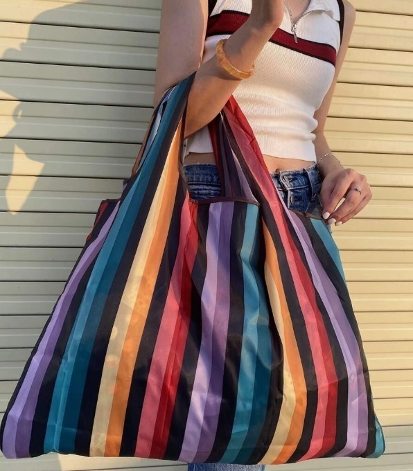 ■新品■エコバッグ【ストライプ 縦模様】【カラフル】大容量 コンパクト 簡単  かわいい 便利 ショッピングバッグ