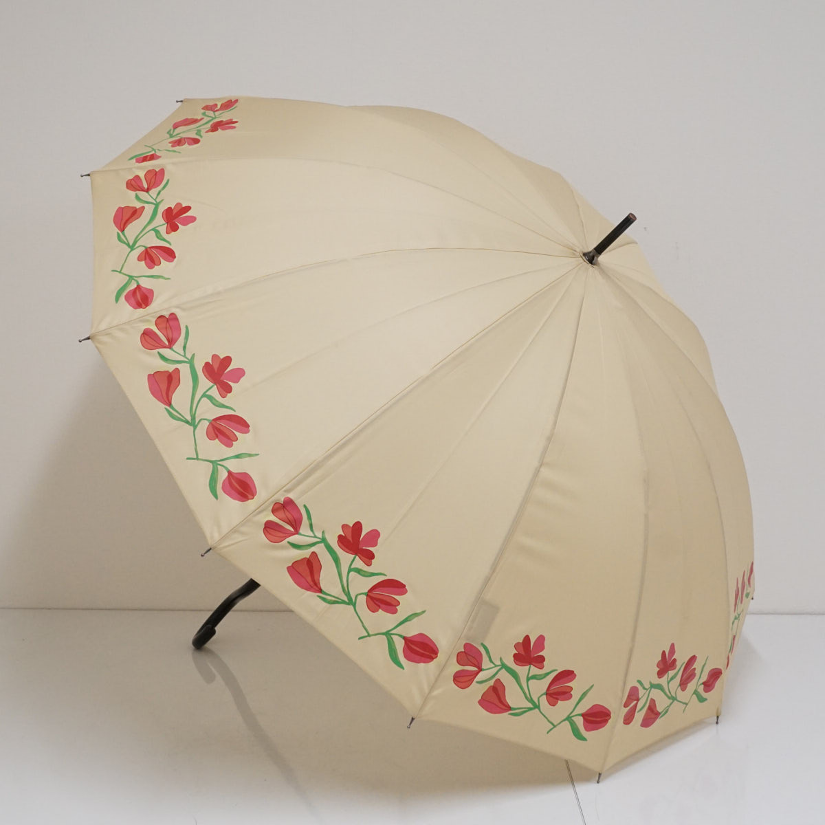 傘 Sybilla シビラ USED品 アートフラワー ベージュ 12本骨 多間 55cm A2877