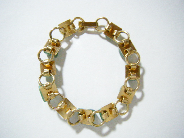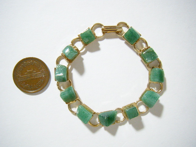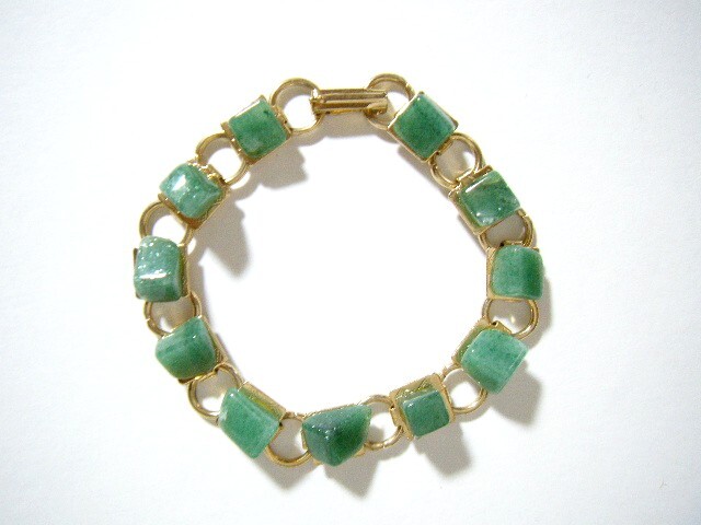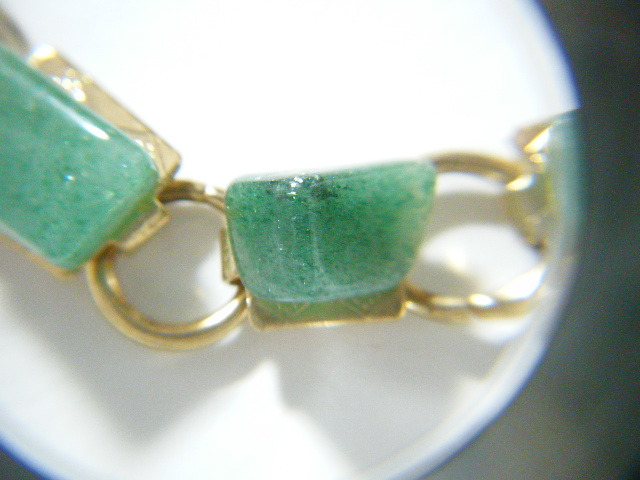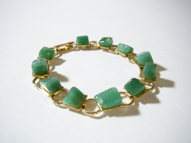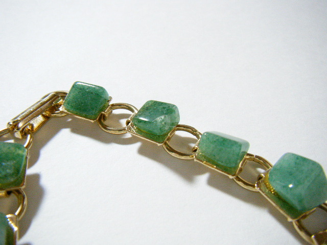 ★翡翠? ヒスイ? ブレスレット ゴールドカラー 内側寸法 約16cm【GN1】