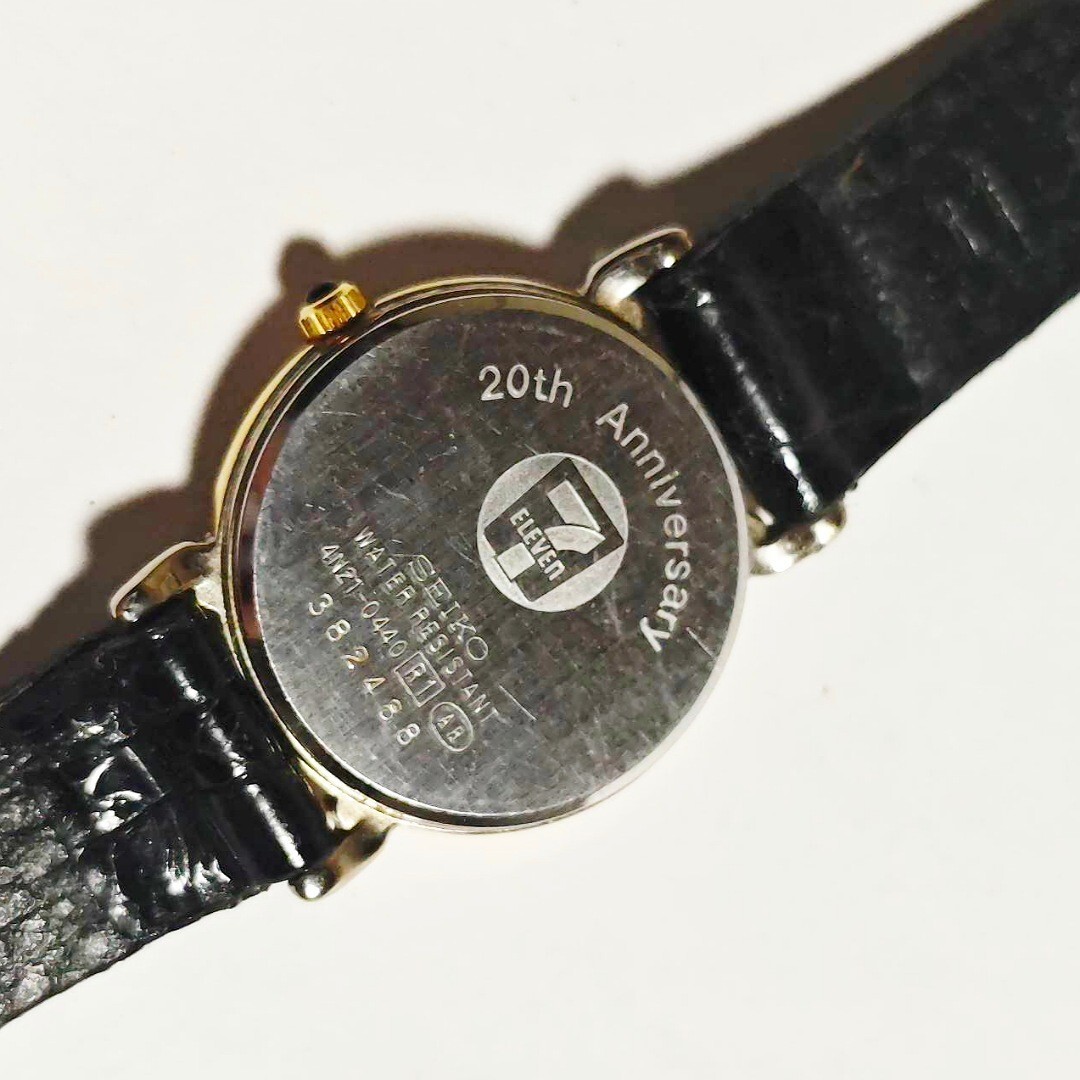 現在動作しております。裏蓋にセブンイレブン20周年記念?の記念刻印があります。 高級サファイアガラス搭載につきガラスに傷はありません。今後もよほどのことがなければ傷はつかないくらい傷に強いです。社外バンド装着中です。
