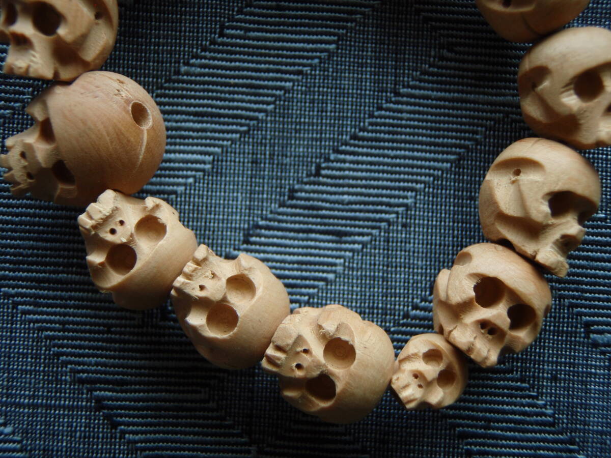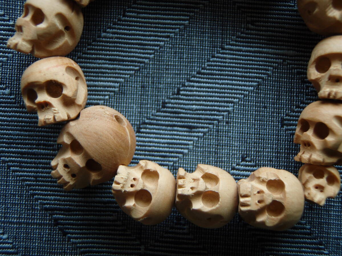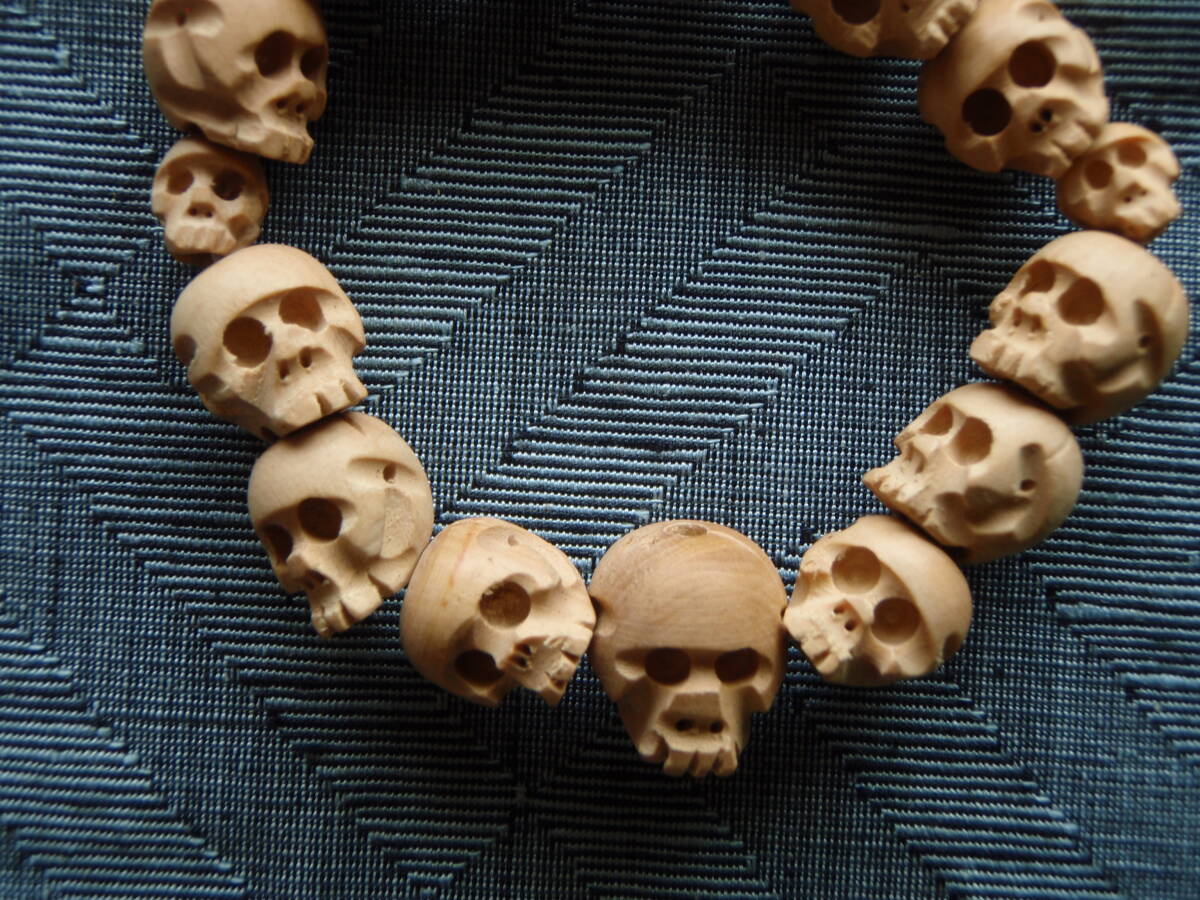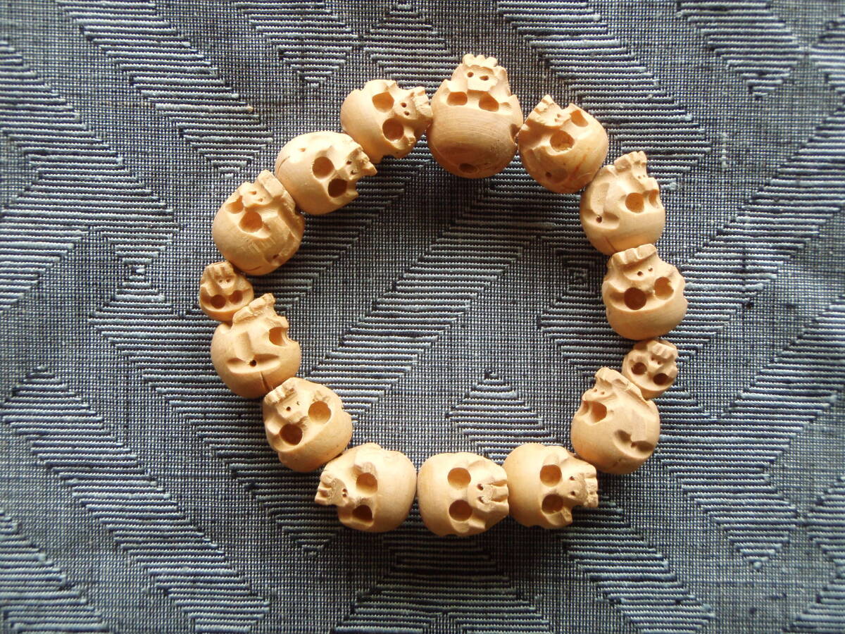 天然珍品特大粒黄楊木透彫腕輪念珠 髑髏