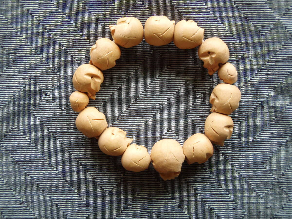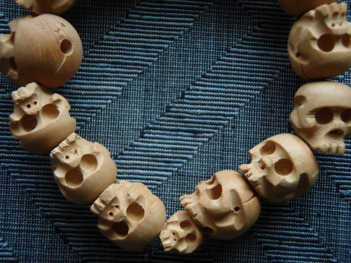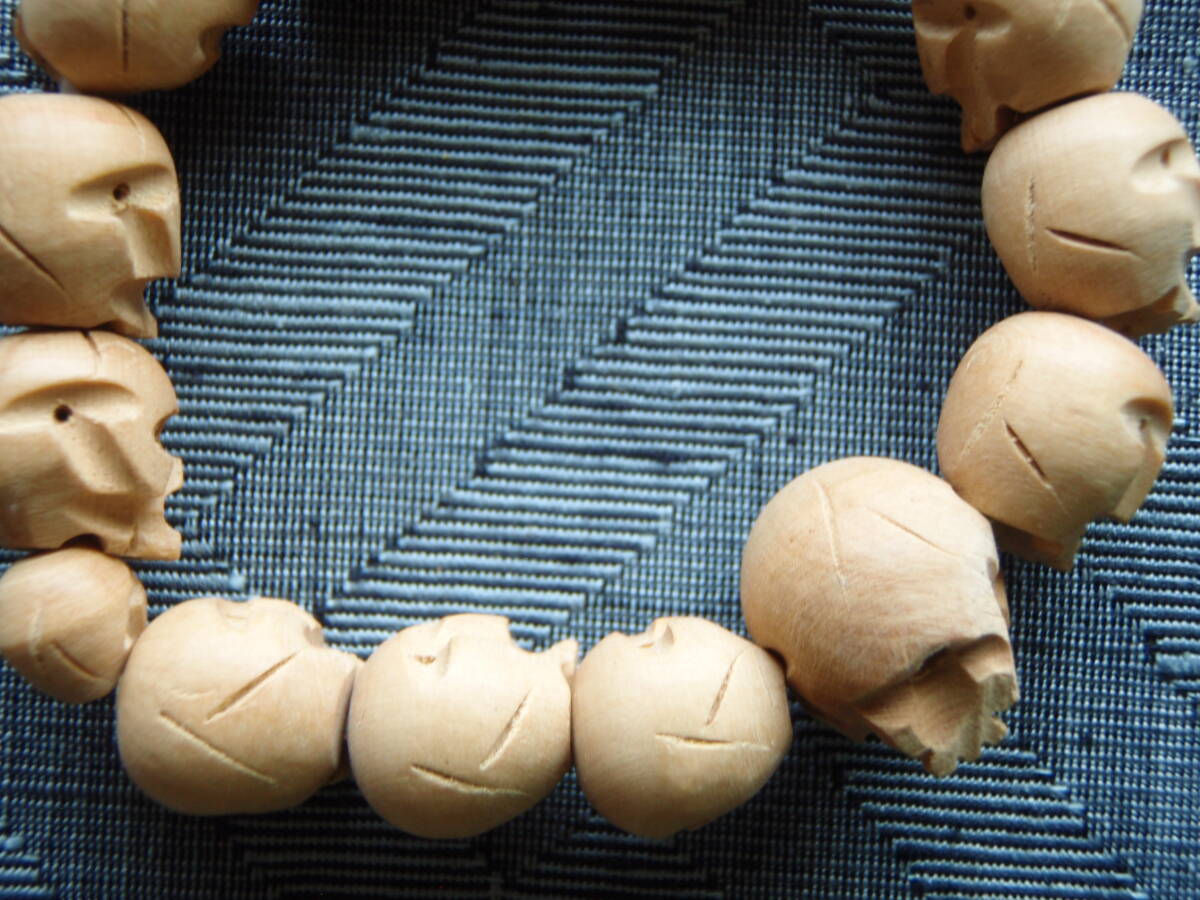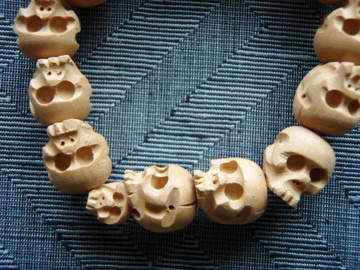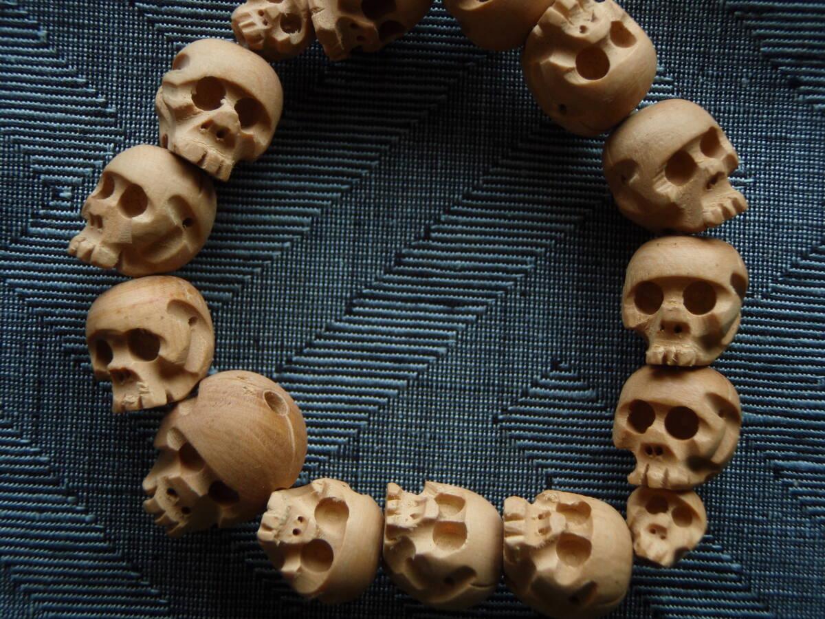 天然珍品特大粒黄楊木透彫腕輪念珠 髑髏