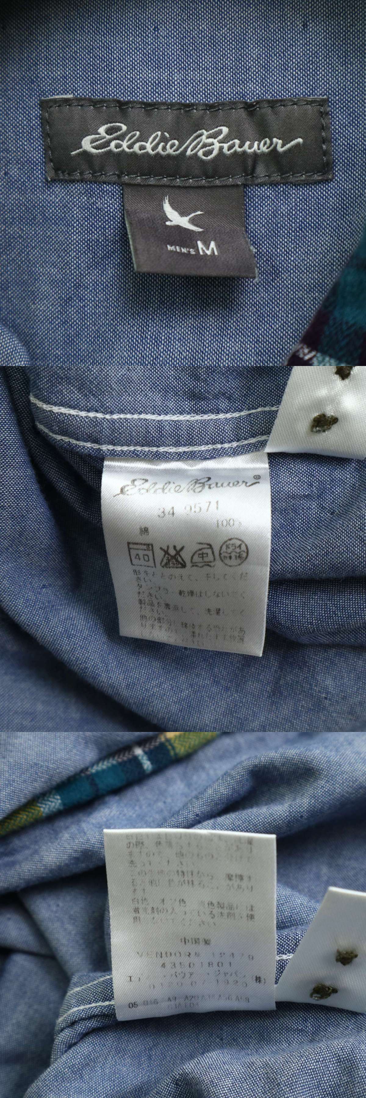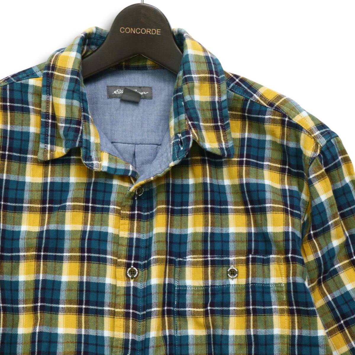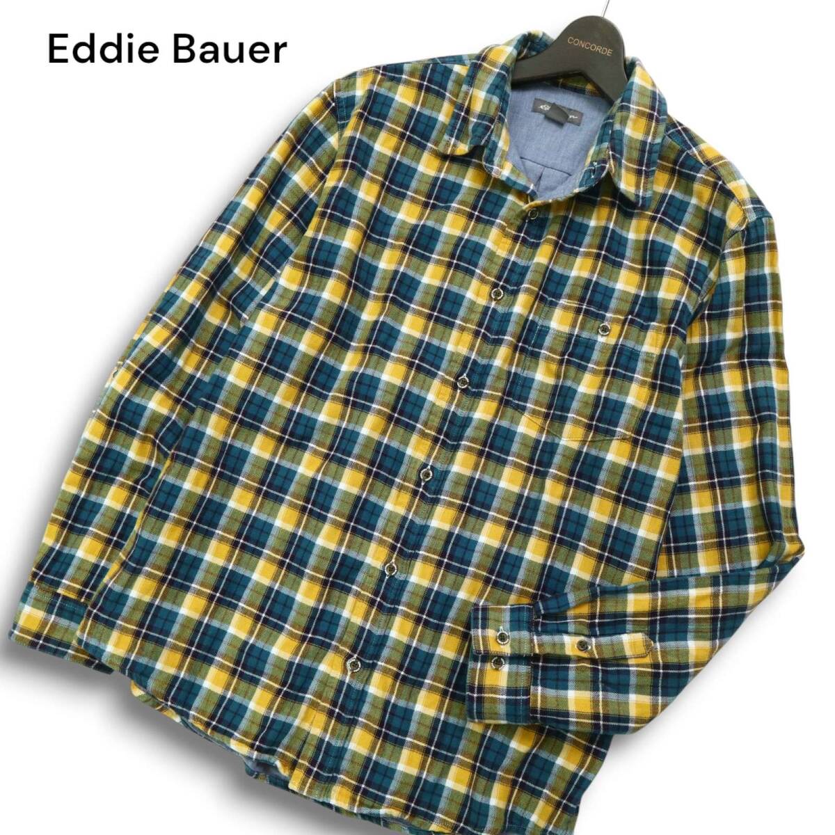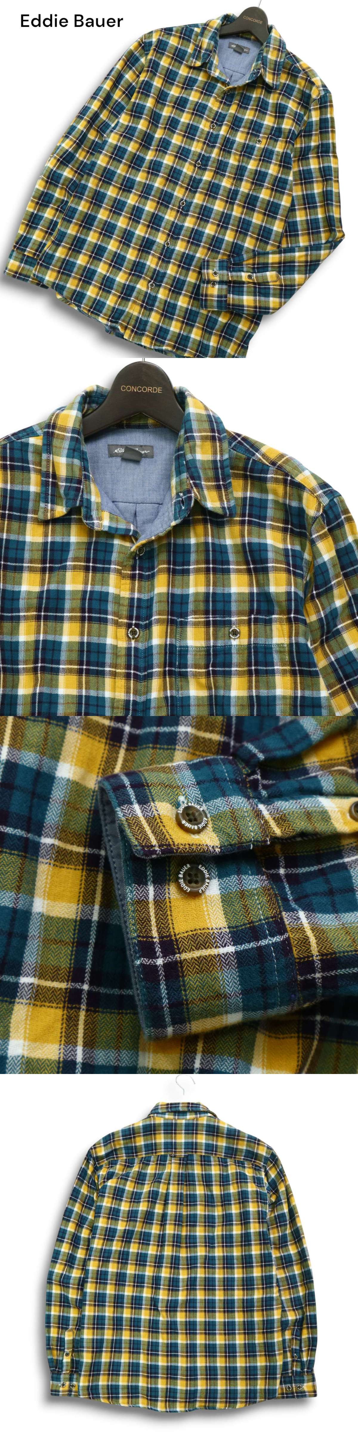 Eddie Bauer エディーバウアー 通年 胸ポケット★ 長袖 チェック シャツ Sz.M メンズ アウトドア 黄色