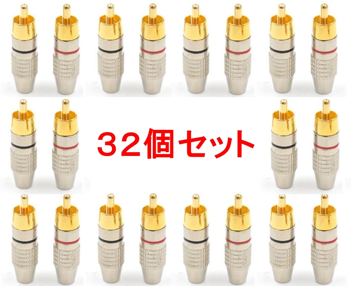32個セット RCAプラグ 金メッキ仕上げ 送料無料 (RCA端子 ピン端子 ピンプラグ ピンジャック RCAケーブル オーディオケーブル)