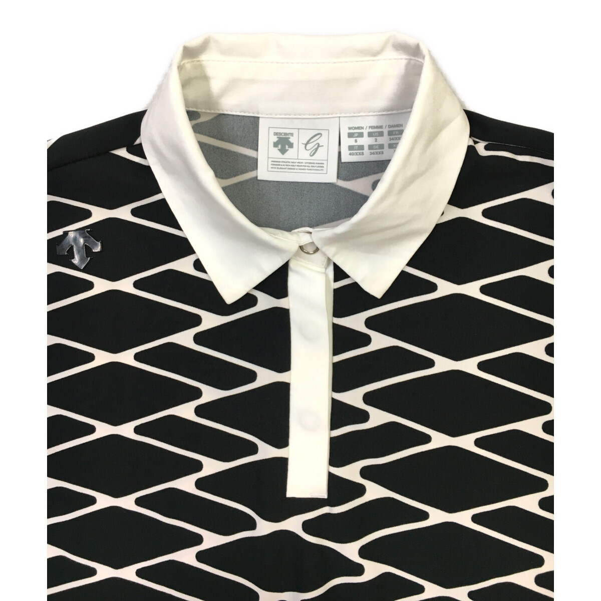 coco 中古【SALE】 デサントゴルフ DESCENTE GOLF レディース 半袖ポロシャツ S 黒×白 総柄 S 中古 レターパックプラス発送可 89520