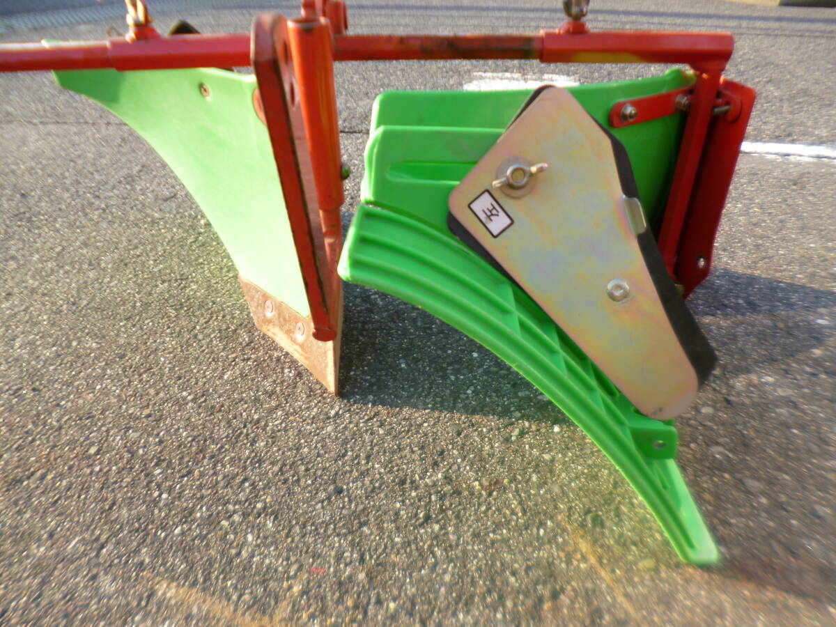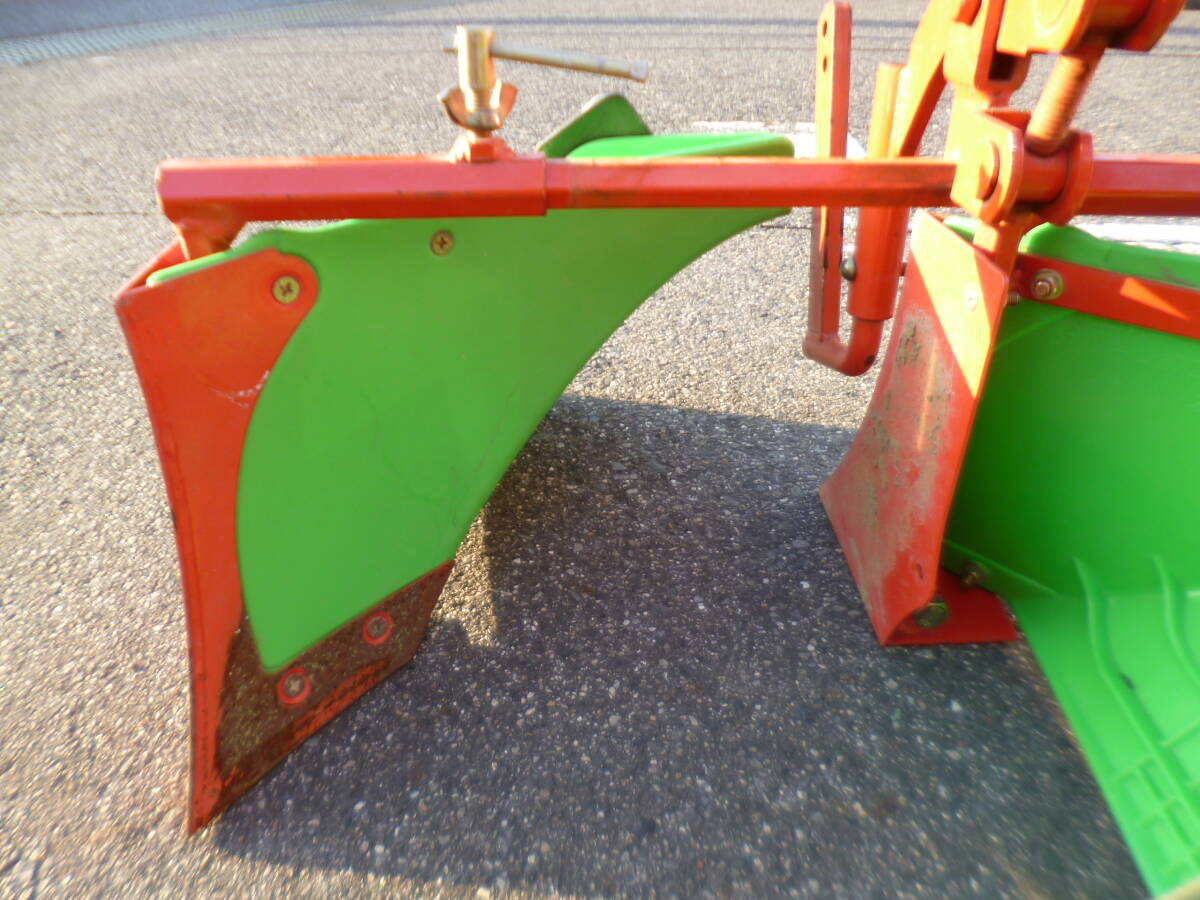 ■1台3役の畝立てアタッチメントで写真では半分を組み替えて写してありますが左右の成型板を内盛丸畝と外盛丸畝を作れます。丸盛平畝も制作出来るんですが平畝制作時に使う板が見当たらないので欠品です。薄板に穴をあけて作れば簡単に制作できます。使用頻度は写真でもお分かりになるようにほとんど使用していないきれいな状態の中古スーパーグリーン畝立器です■