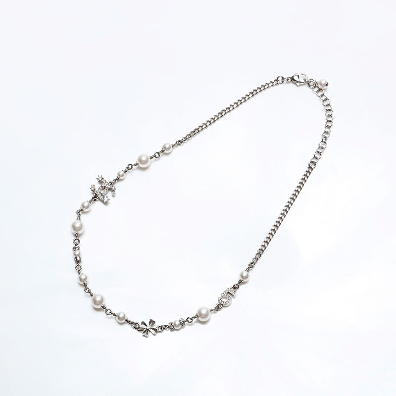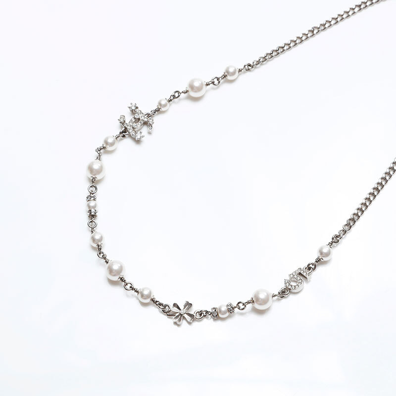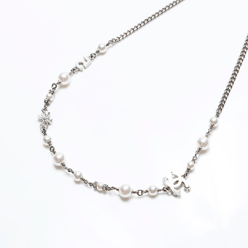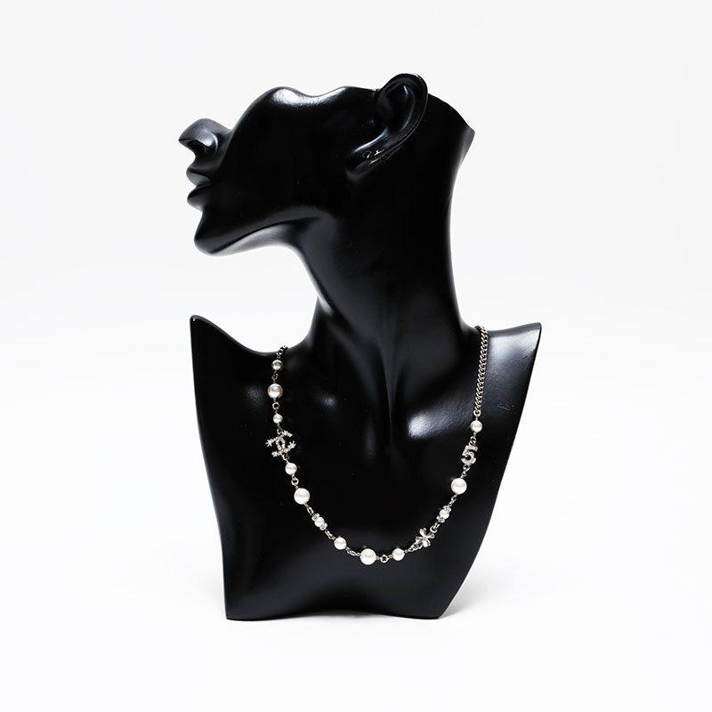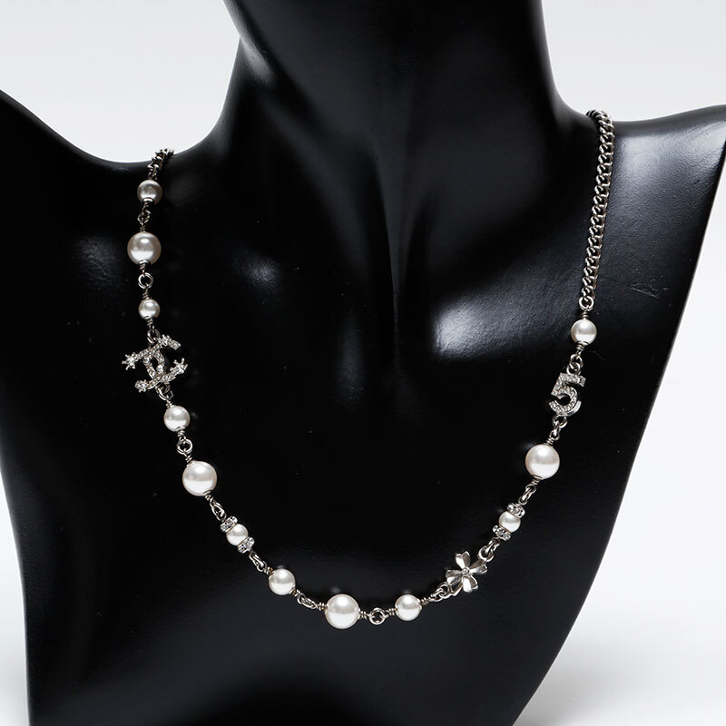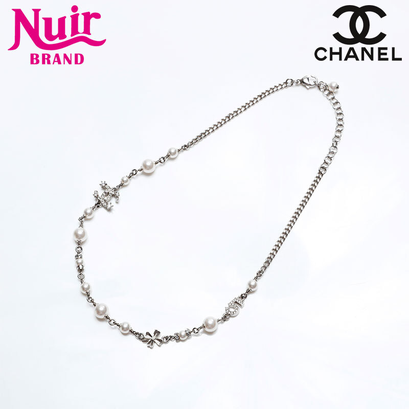 シャネル CHANEL ネックレス ココマーク パール ラインストーン シルバー
