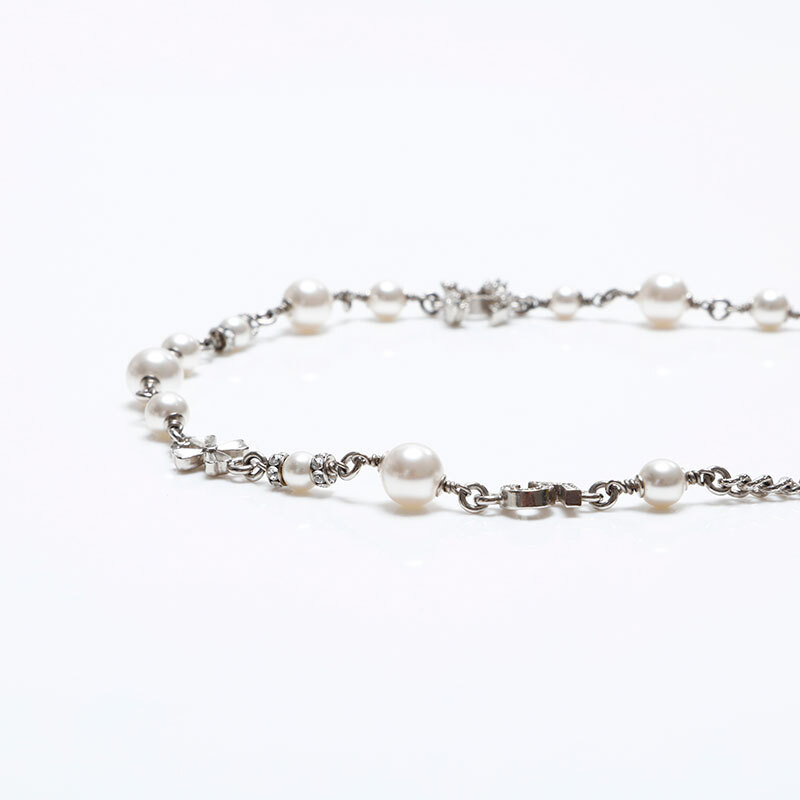 極美品 CHANEL ココマーク パール ラインストーン ネックレス シルバー