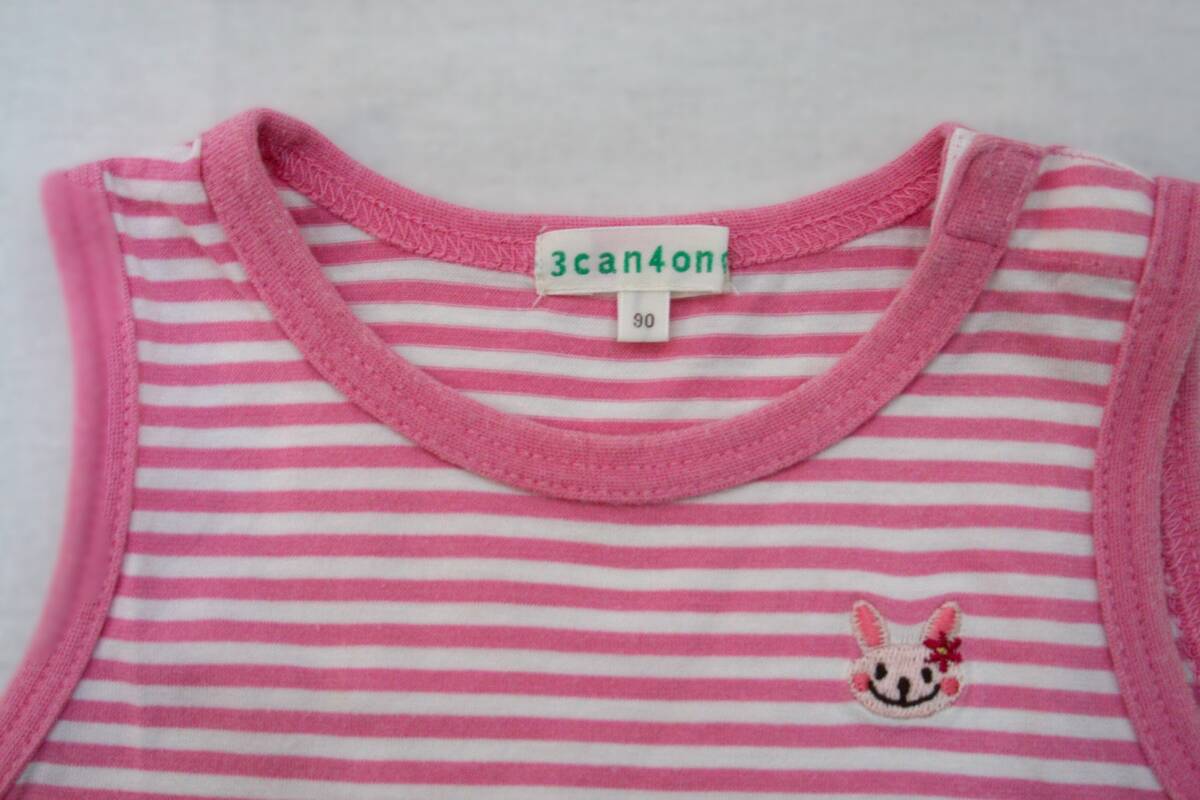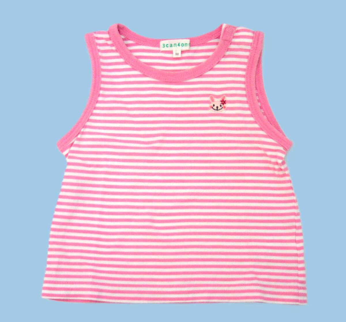 3can4on ピンク・白 ボーダー タンクトップ うさぎ刺繍 90㎝ (株)ワールド