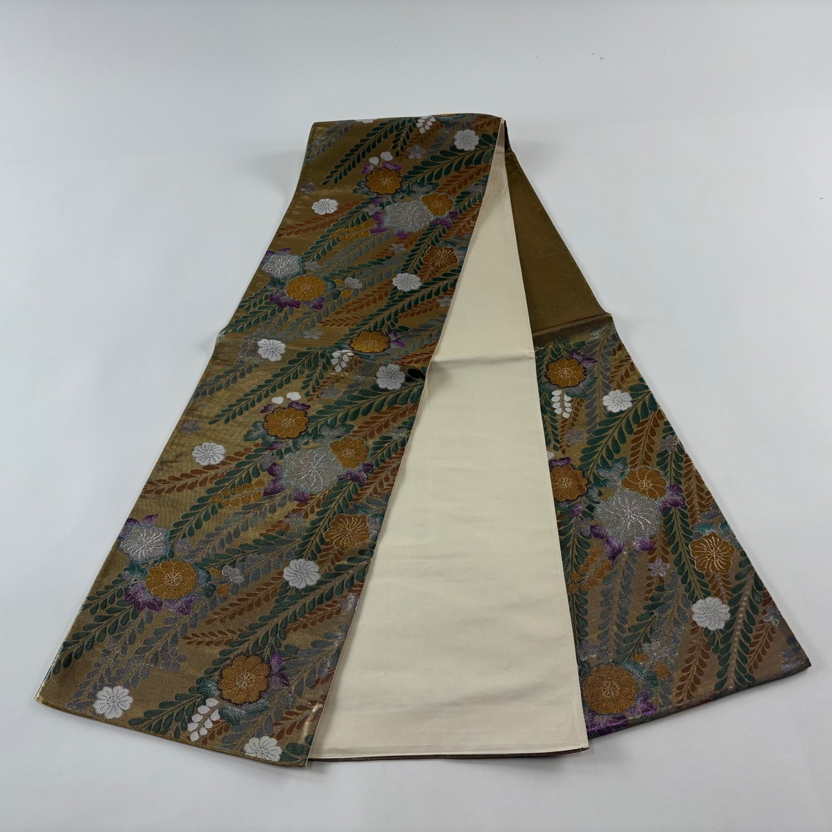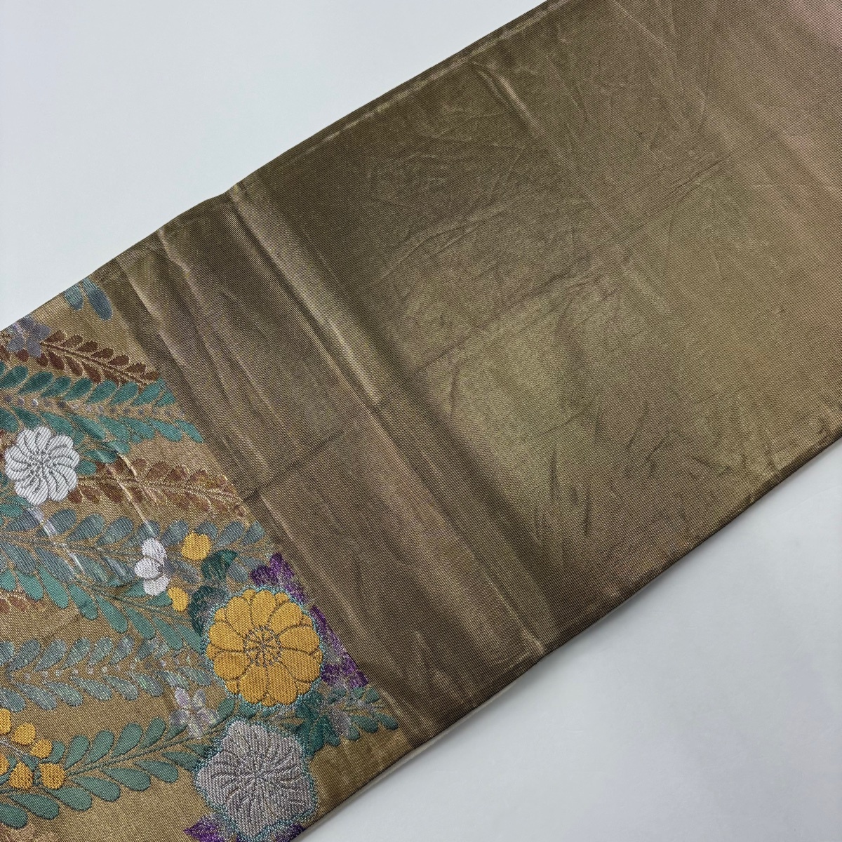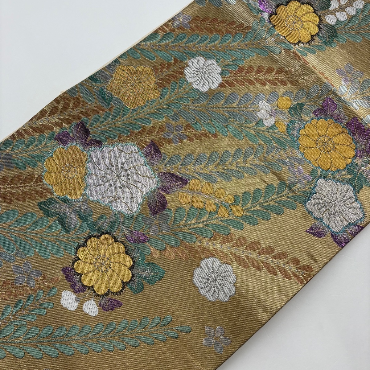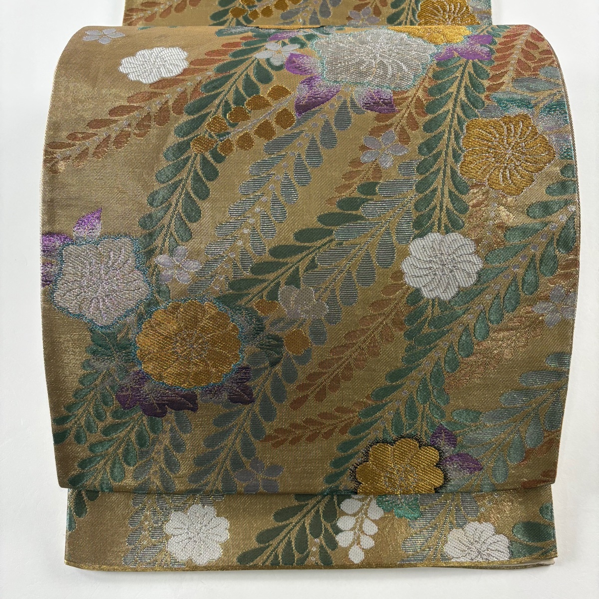 | 袋帯 美品 秀品 草花 金糸 箔 金色 六通 正絹 【中古】 |