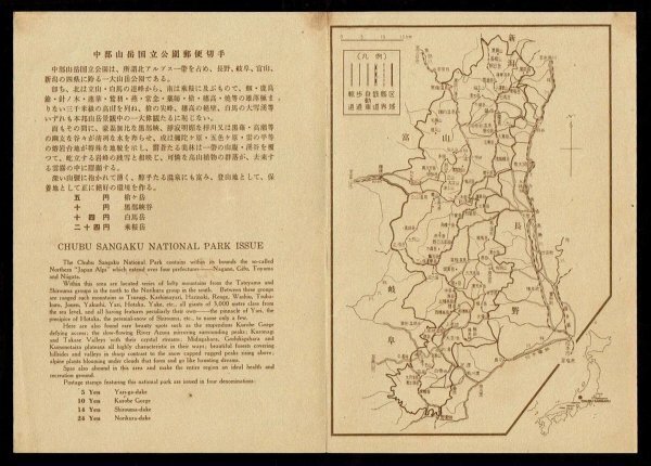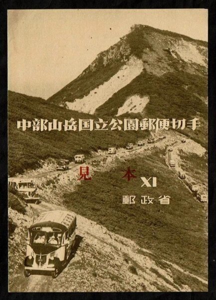 みほん字入り 第1次国立公園切手 中部山岳 小型シート タトウ付き