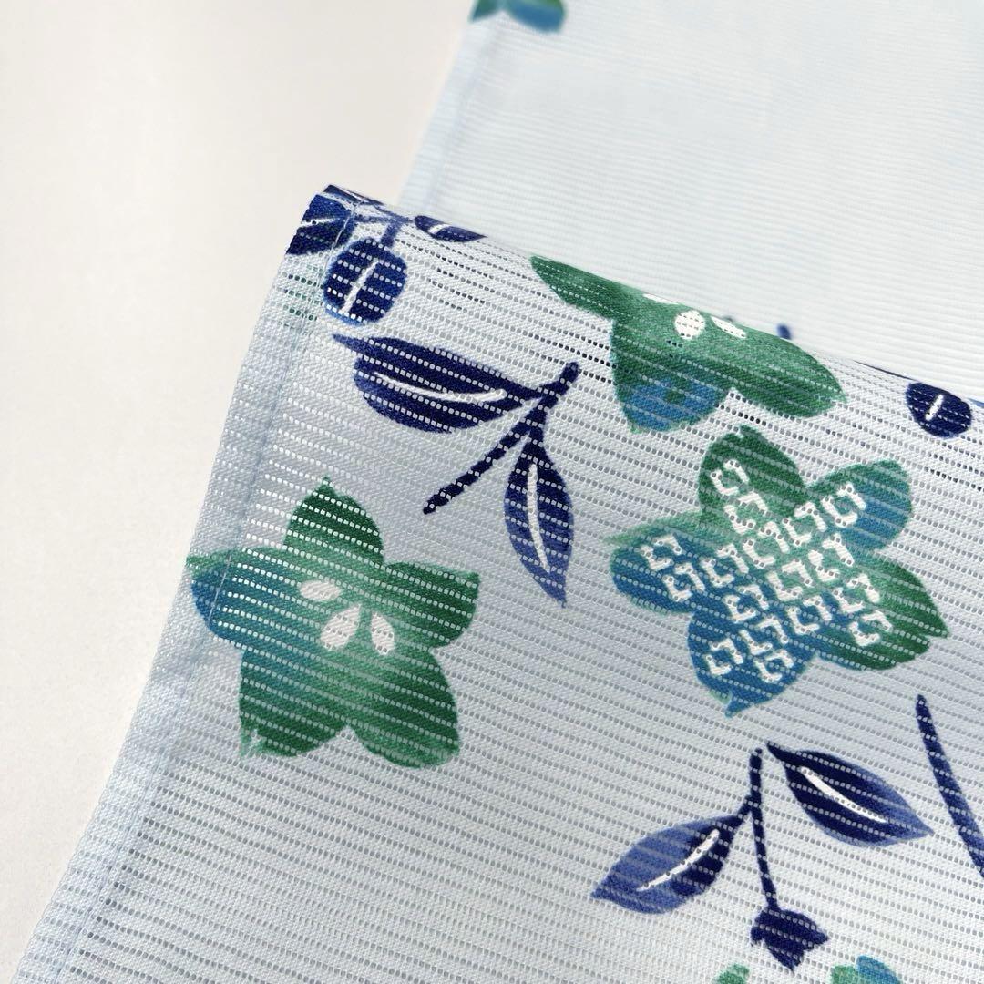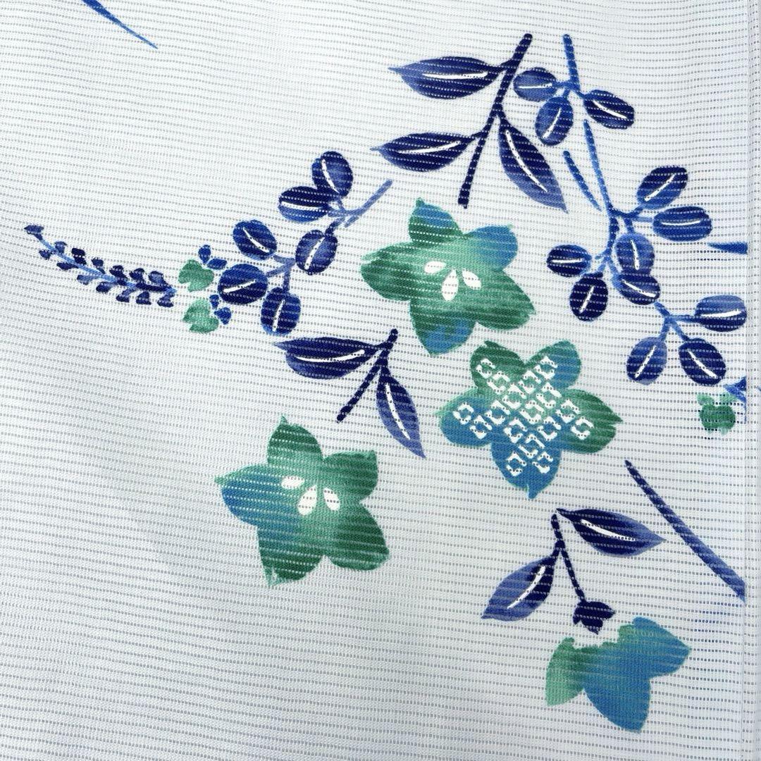 水色地に、濃紺とグリーンの桔梗の花柄が