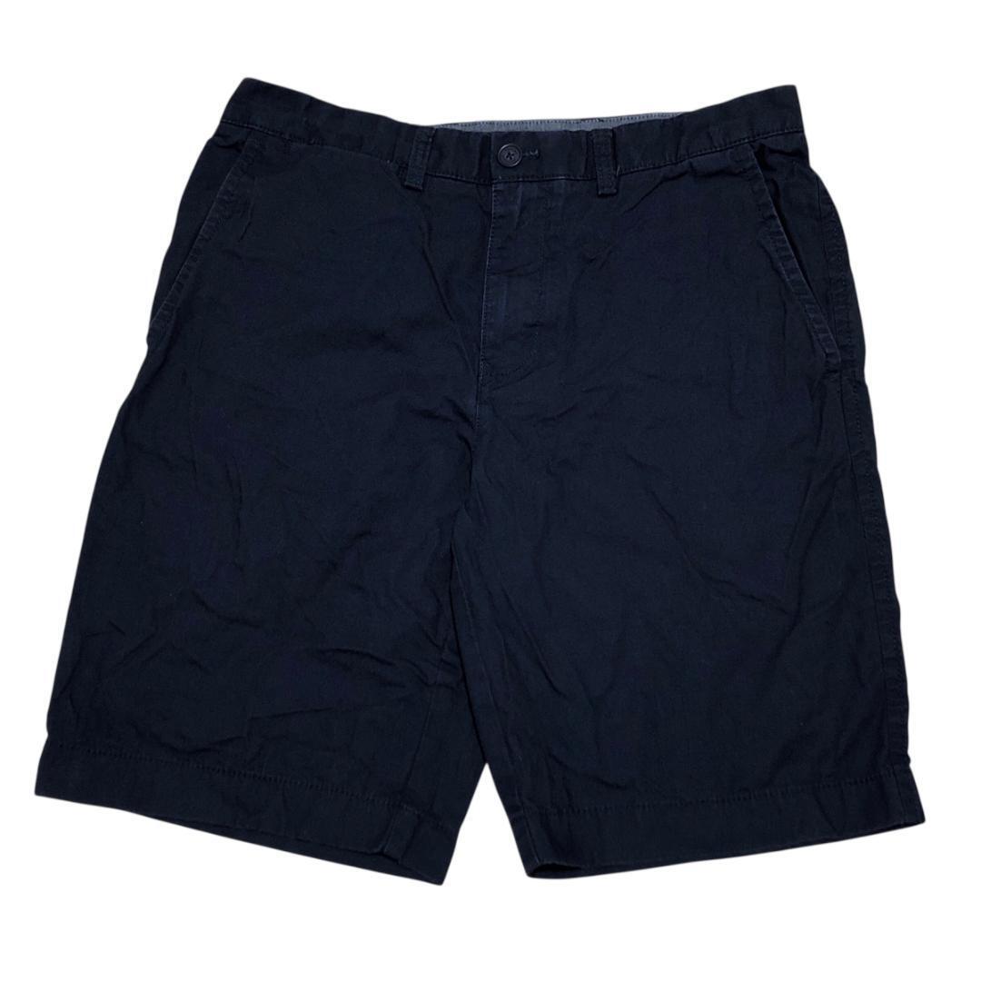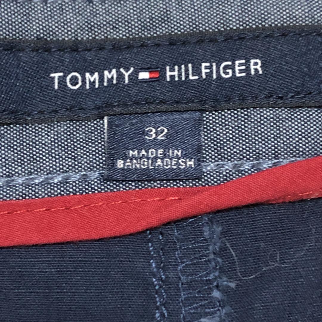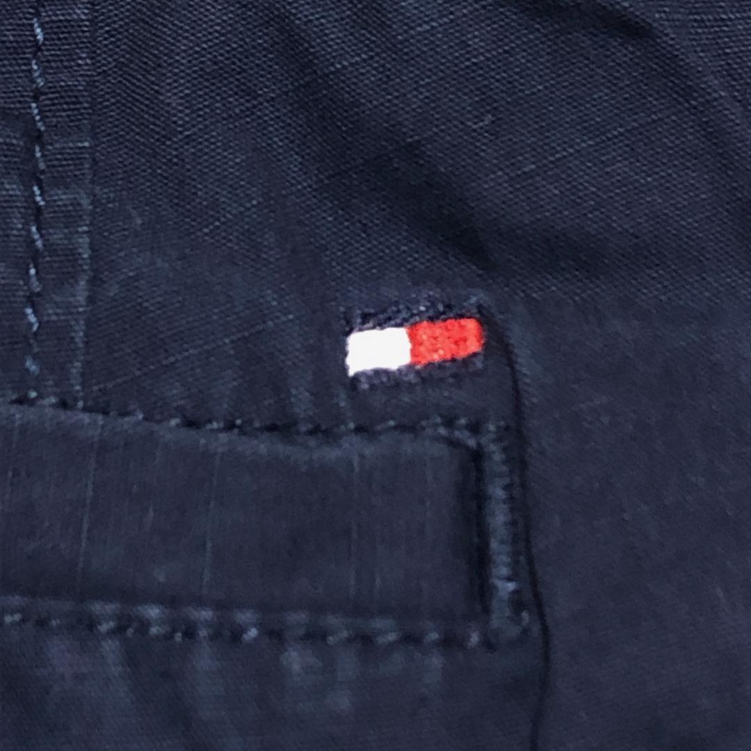 トミーヒルフィガー W32 ハーフパンツ 無地 紺 ロゴ刺繍 夏物古着l86