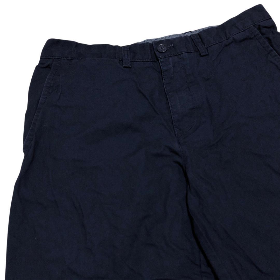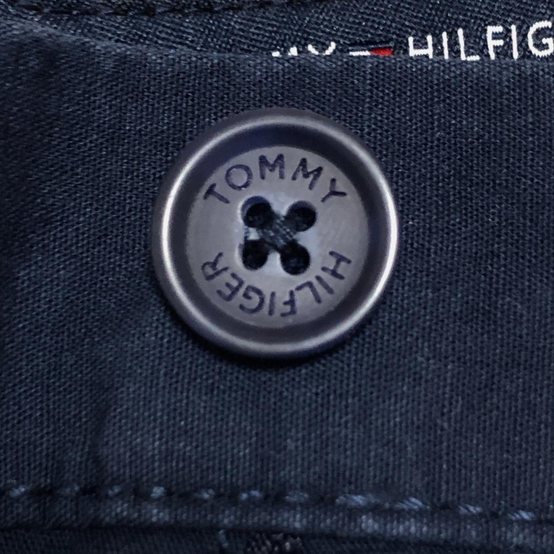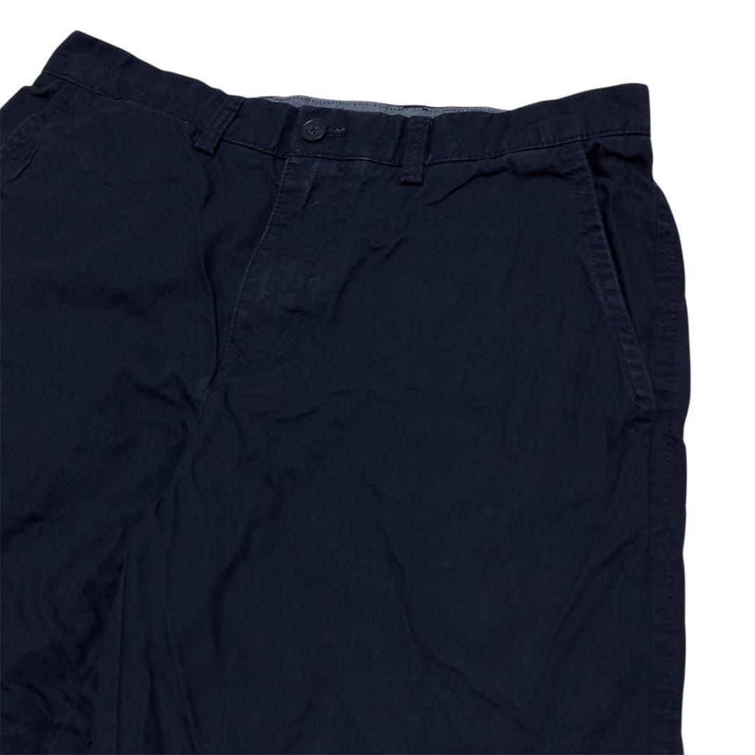 トミーヒルフィガー W32 ハーフパンツ 無地 紺 ロゴ刺繍 夏物古着l86