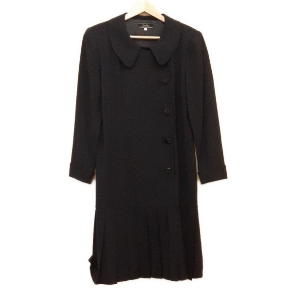 レリアン Leilian サイズ7 S - 黒 レディース クルーネック/長袖/ロング/プリーツ 美品 ワンピース