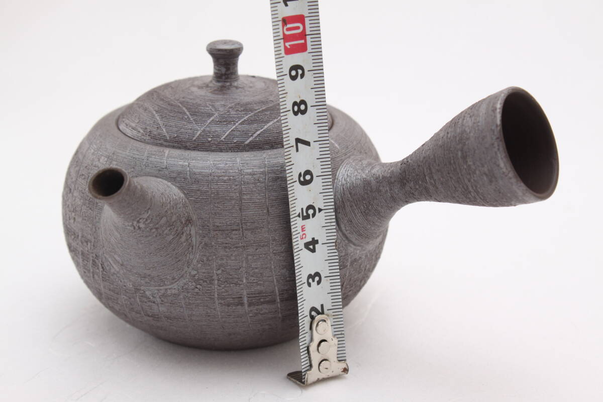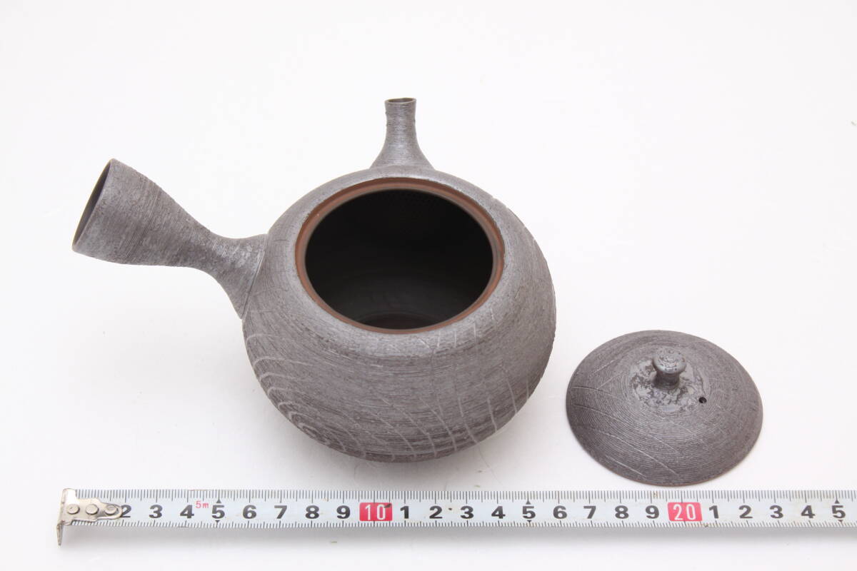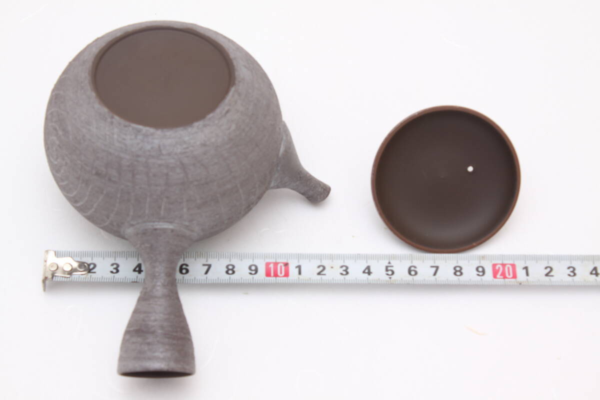 1062 新品未使用 常滑焼 人気作家 昭龍 梅原昭二 軽い184g 燻木目調 年輪 天目急須 横手 急須 茶注 煎茶道具