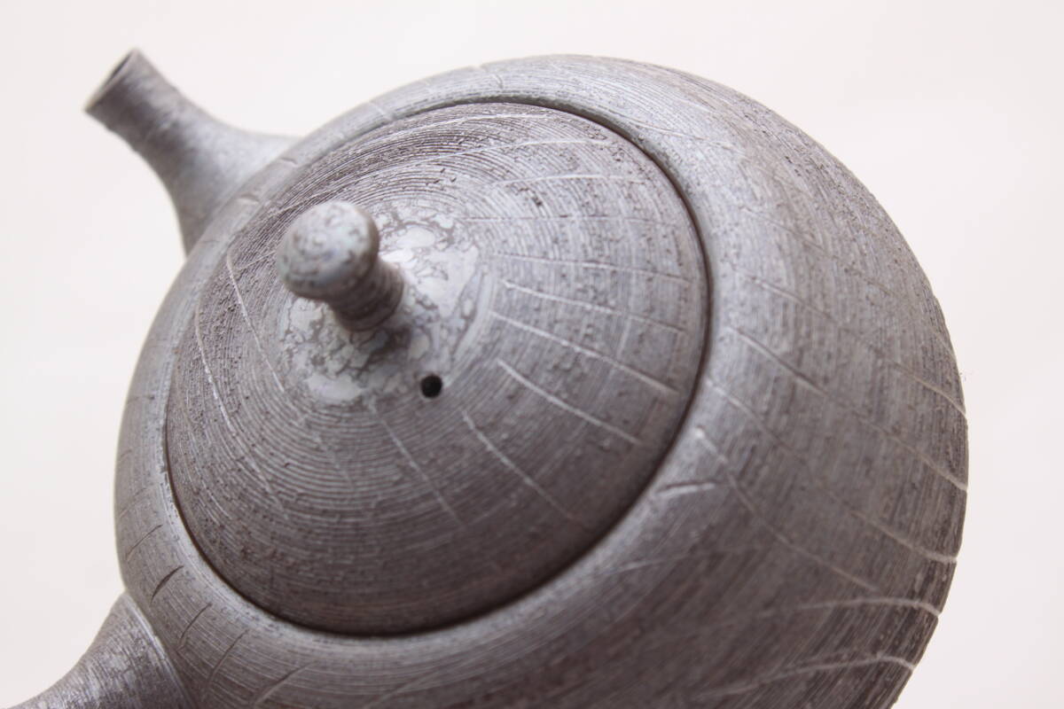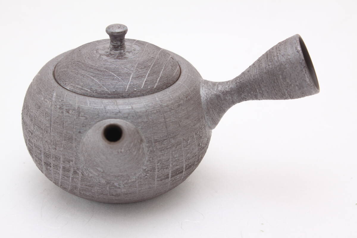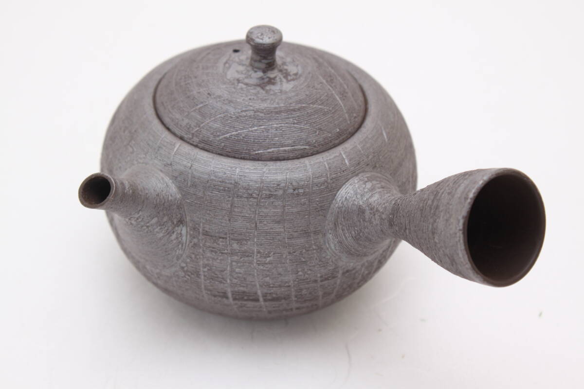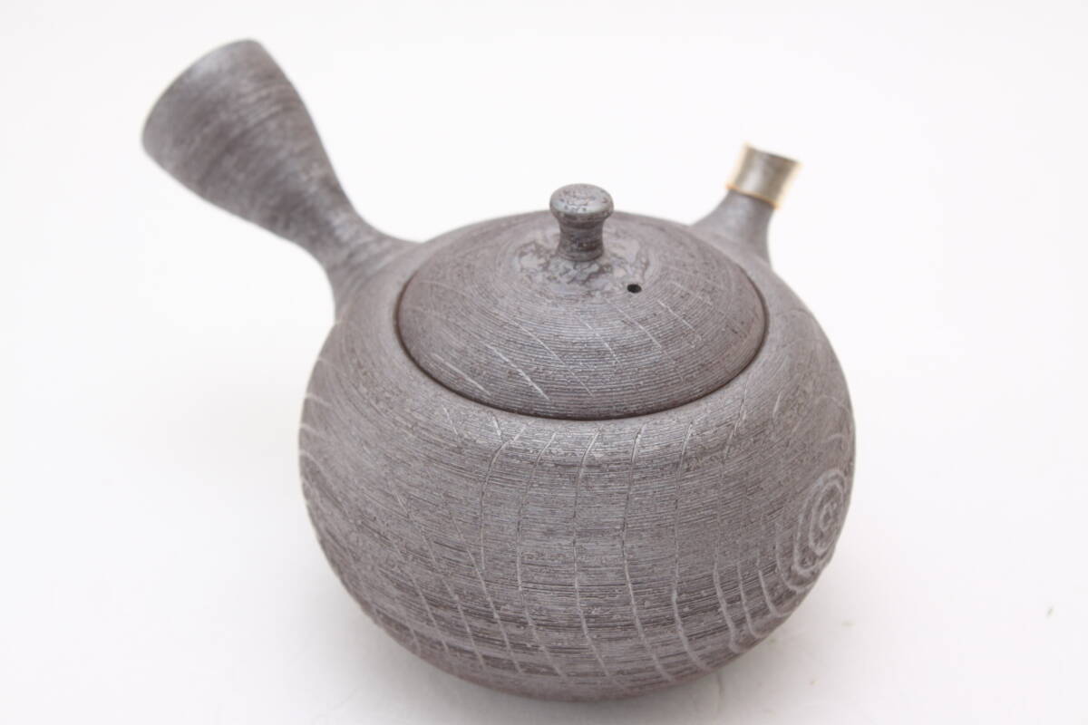 1062 新品未使用 常滑焼 人気作家 昭龍 梅原昭二 軽い184g 燻木目調 年輪 天目急須 横手 急須 茶注 煎茶道具