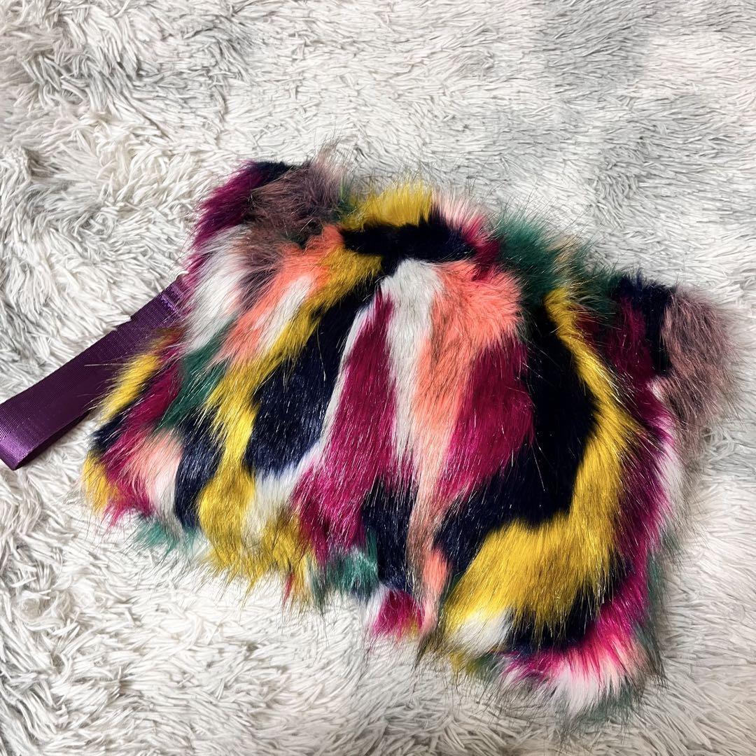 マルチカラー フェイクファー クラッチバッグ