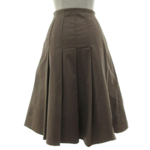 ヴォイスメール VOICEMAIL スカート フレア プリーツ ミディ丈 日本製 コットン混 ブラウン 茶 USA4 レディース