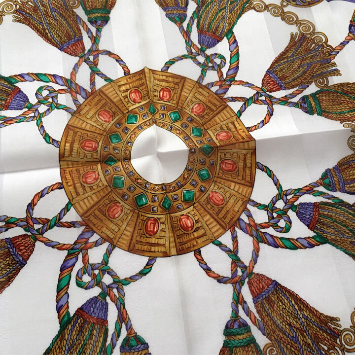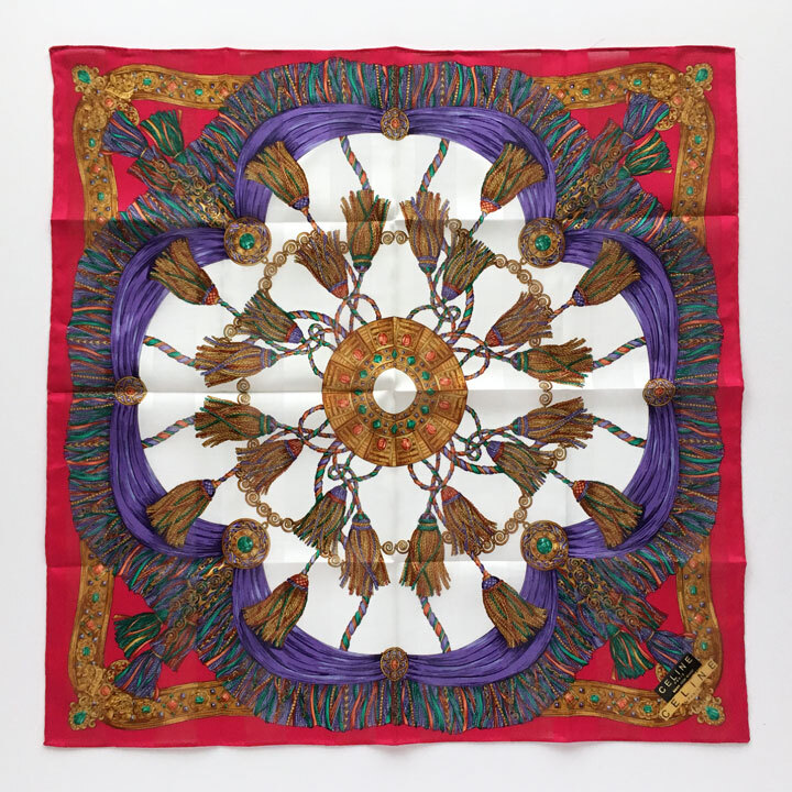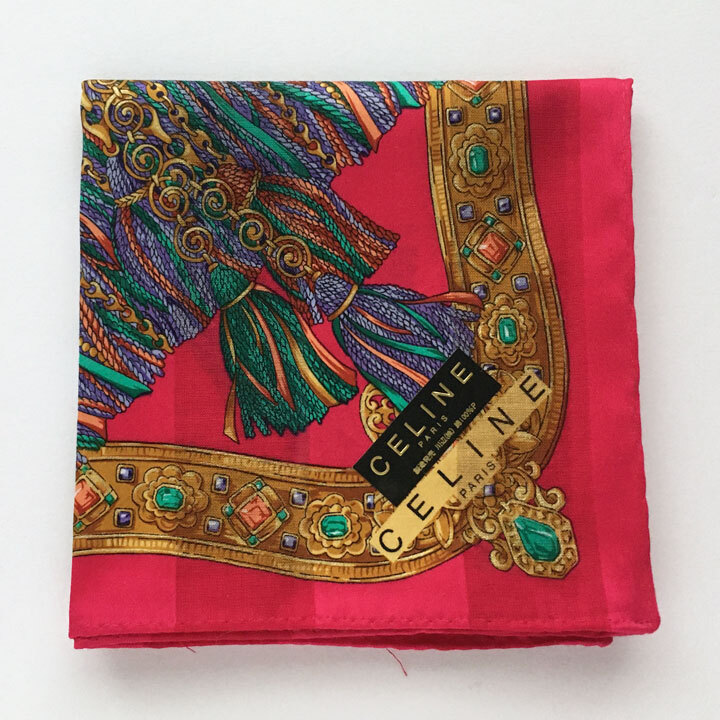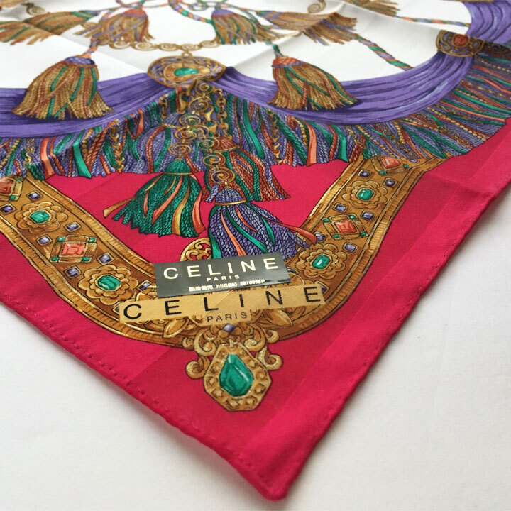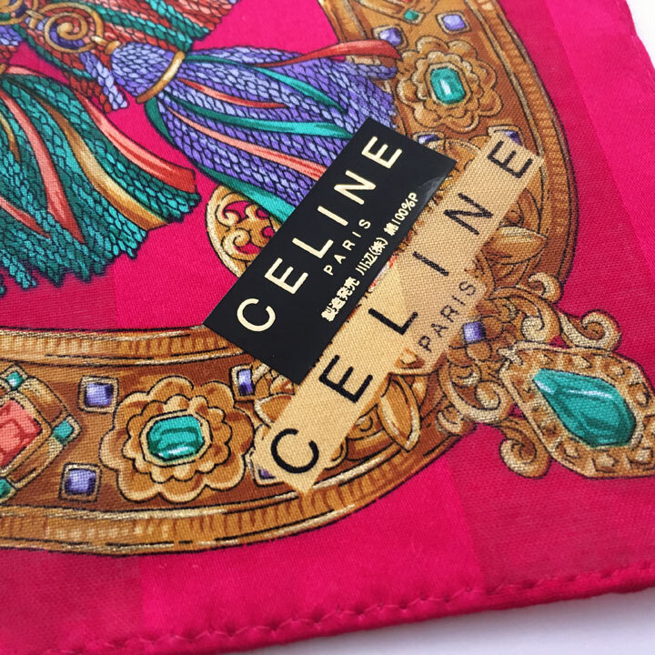 タッセルと宝石などをモチーフにしたセリーヌらしいデザインのハンカチです。