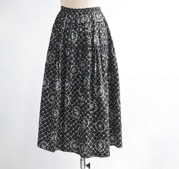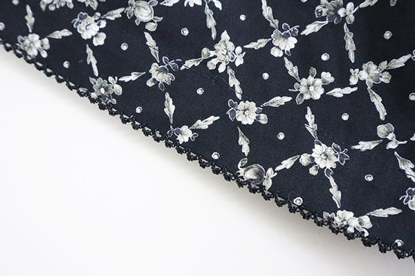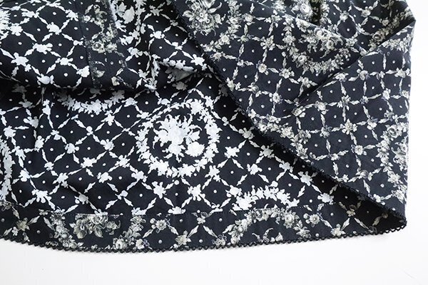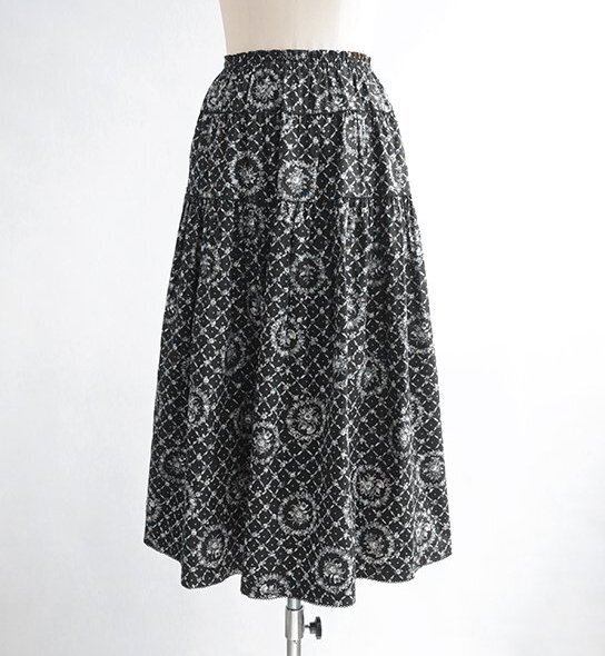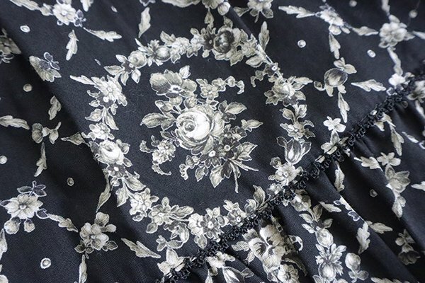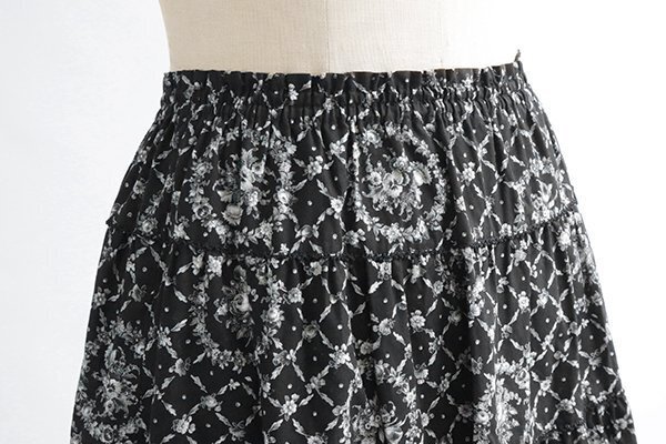 WONDERFUL WORLD (KANEKO ISAO) ピコフリル ティアード ロングスカート 黒 ◆ 小花 バラ柄 ワンダフルワールド カネコイサオ ◆G051