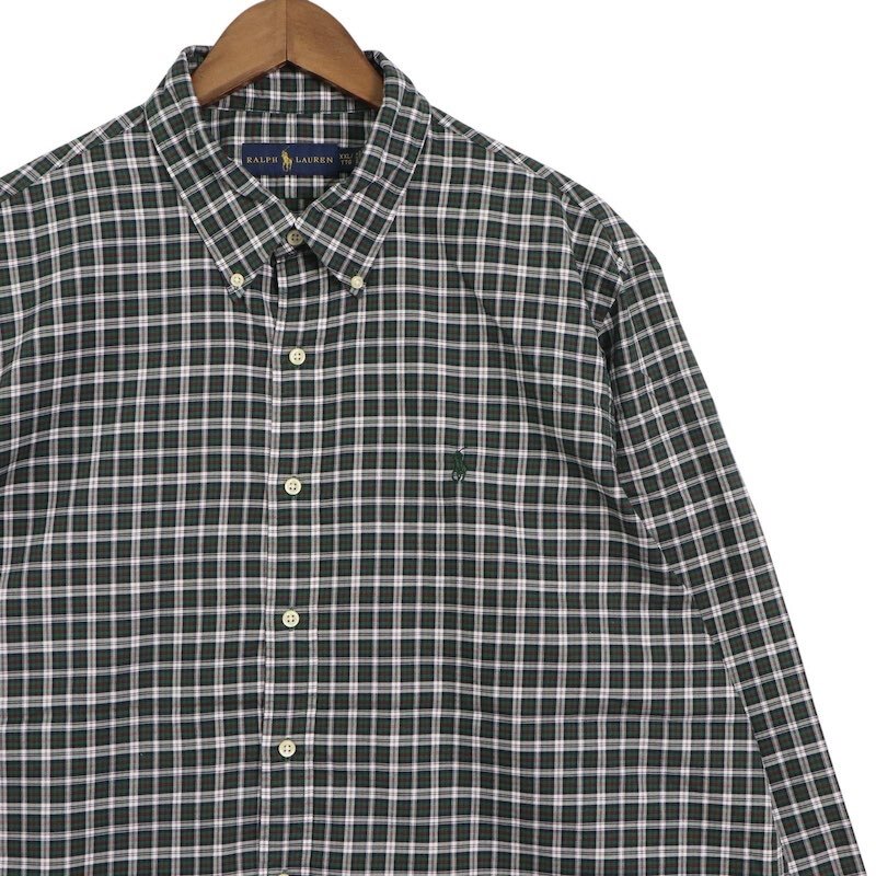 Ralph Lauren ラルフローレン 長袖ボタンダウンシャツ ミニチュアタータンチェック柄 メンズUS-XXL グリーンetc hsc-0664n