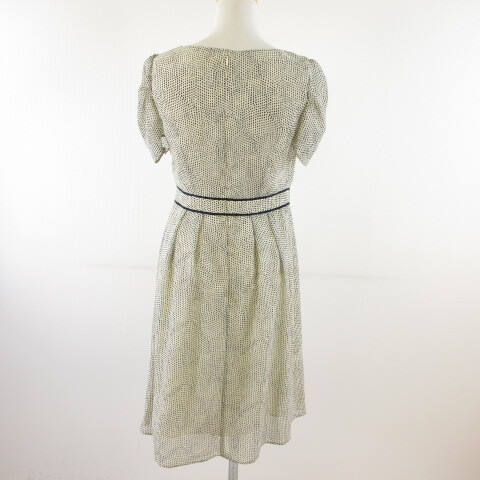 スーナウーナ Sunauna ワンピース ミニ 半袖 総柄 ベージュ 黒 36 *T549 レディース