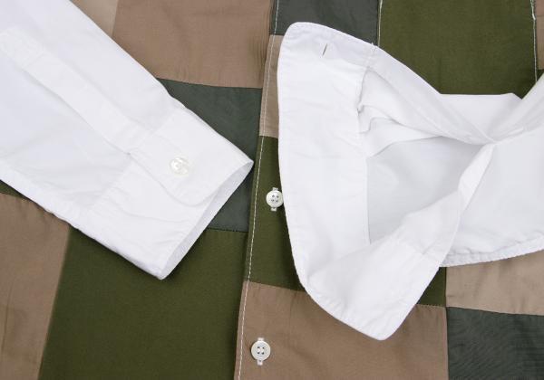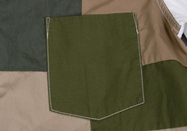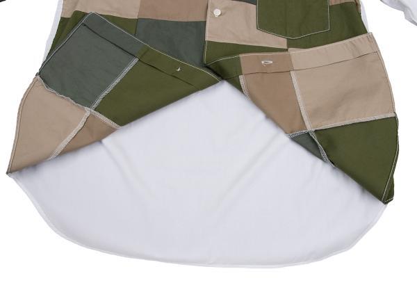 | コムデギャルソン オムCOMME des GARCONS HOMME フロントミリタリーカラーパッチワーク切替シャツ 白カーキ緑ベージュM |