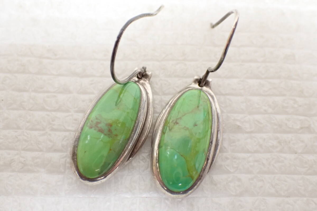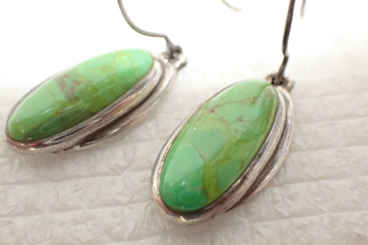 グリーンターコイズ シルバー925刻印 ピアス アクセサリー 定形外郵便全国一律290円 B1-MA 中古品です。 シルバー特有のくすみがありますが、目立つ様な傷みはございません。 ○サイズ 約2.8cm×約1.3cm ※素人採寸の為、多少の誤差はご了承下さい。 詳しい状態などは画像を参考に判断してください。 状態の説明はあくまでも出品者の主観ですので、神経質な方のご入札はお控え願います。 写真に写っている物がすべてですので、その他に付属品などはありません。 ※ご使用のパソコン、モニターなどの環境によっては実際の色と若干異なって見える場合がございます。 お探しの方はお見逃しなく! この機会にぜひどうぞ! ノークレーム・ノーリターンとなります。 よろしくお願いします。 特定商取引法に基づく表記 【会社名】 株式会社 西川殖産 【代表取締役】 西川 守 【古物営業許可】 兵庫県公安委員会許可 第631641300006号 【店舗】 エタニティ野里店 【営業所所在地】 兵庫県姫路市野里311-3 アクロポリスⅡ-1F 【連絡先】 079-222-7705 【営業時間】 午前10時~午後7時 【定休日等】 水曜日は定休日となっておりますので、火曜日の夕方から水曜日にご入金、ご連絡などをしていただいた方へのご連絡・発送などは翌日以降となってしまいます。 オークションにつきましても、火曜日の夜から水曜日にご落札していただいた方へのご連絡は翌日以降となってしまいます。 ※その他、GW・お盆・年末年始などもお休みを頂いておりますので、その期間中などもご連絡・発送などできません。(※休みの期間はその都度異なりますので、お急ぎの方は事前にご質問などでご確認していただけますよう、よろしくお願いします。) こちらの都合で誠に申し訳ありませんが、あらかじめご了承いただいた方のご入札をお願い致します。 | |||
