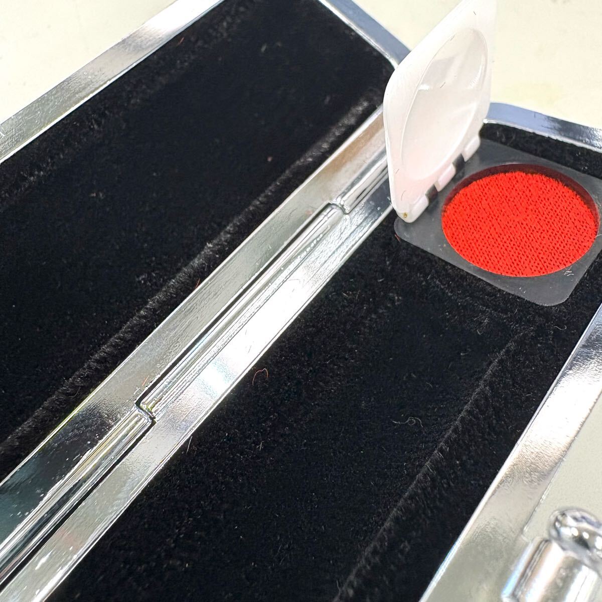 外側は黒の牛革を使用したスタイリッシュなデザイン、内側は黒のベルベット仕様で、印鑑を優しく保護します。