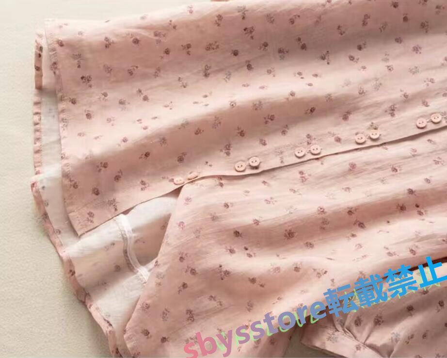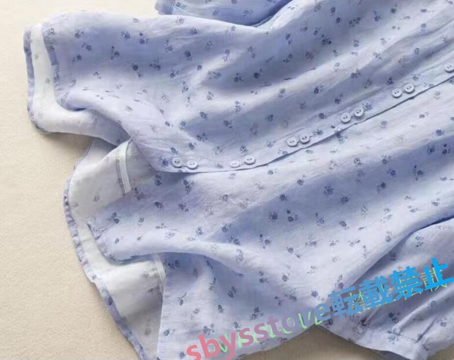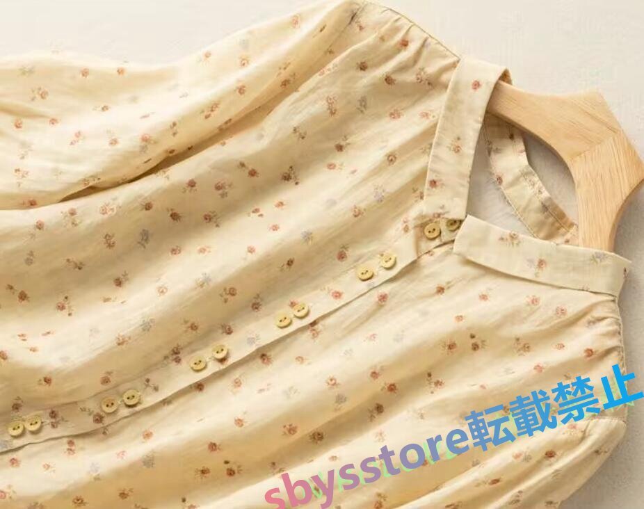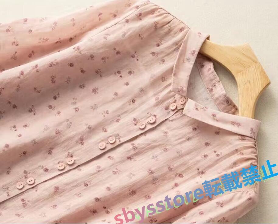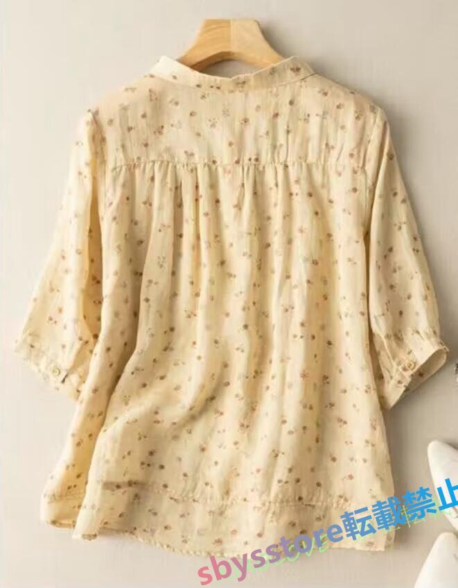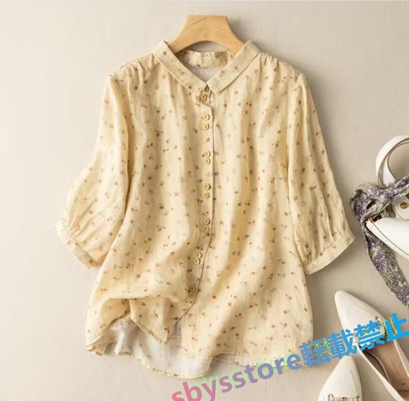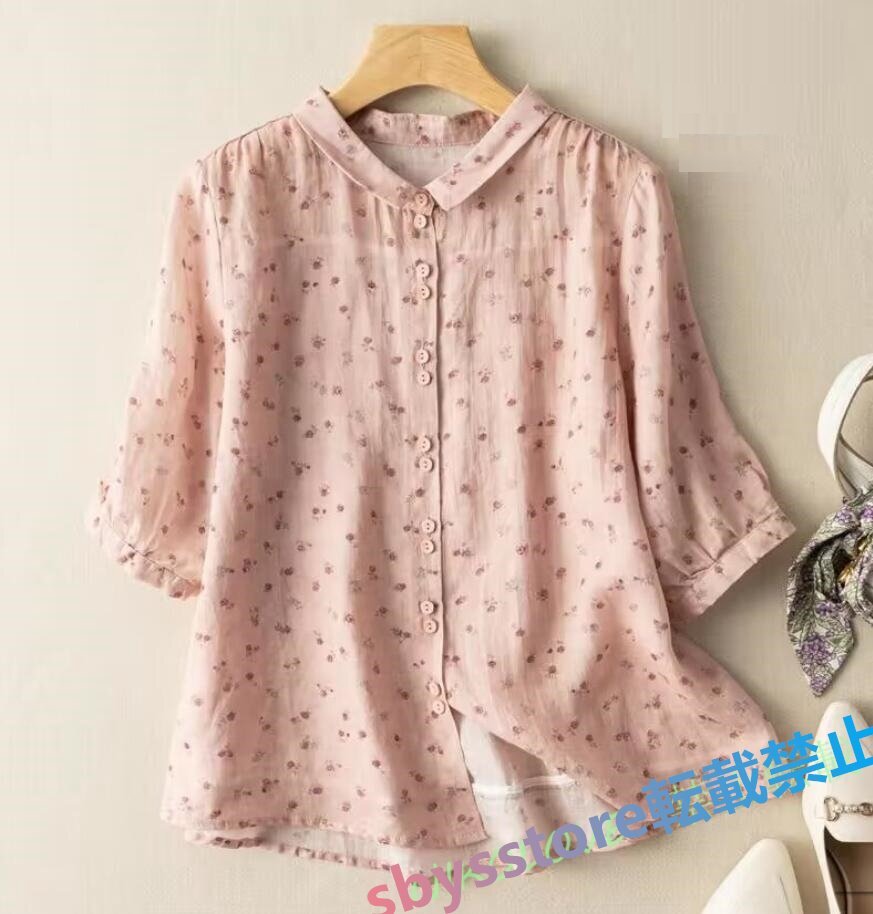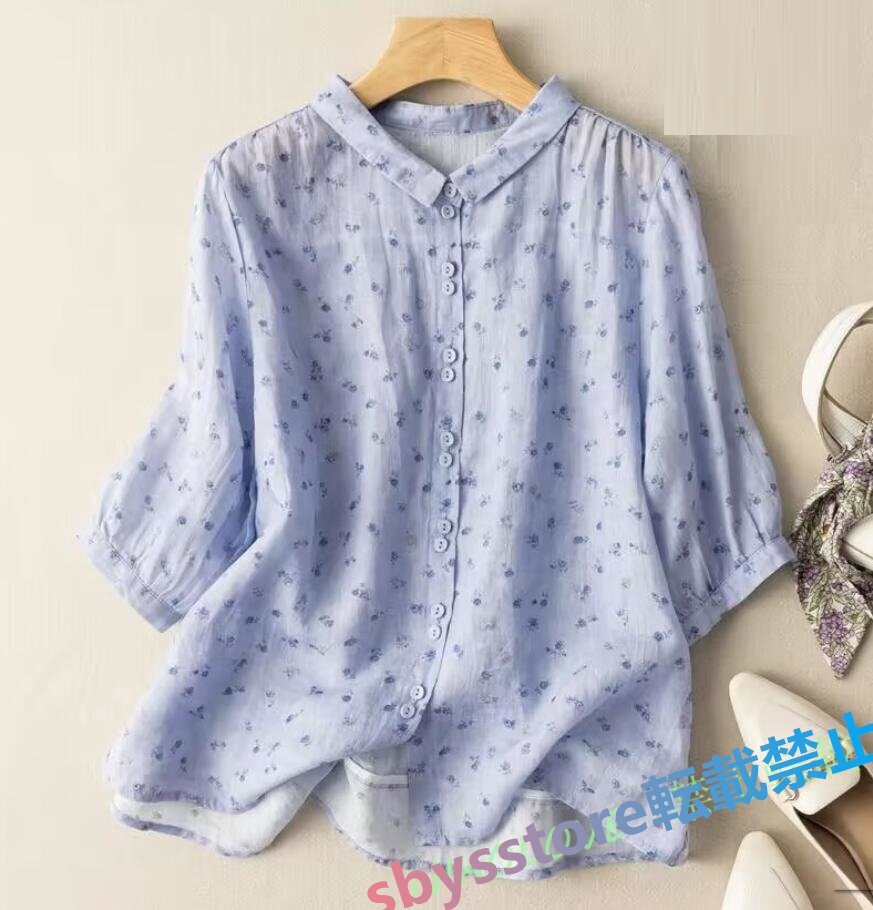 新品綿麻 シャツ レディース ブラウス チュニック ブラウス 七分袖 リネン シャツ ナチュラル 着痩せ ゆったり 可愛い ブルー
