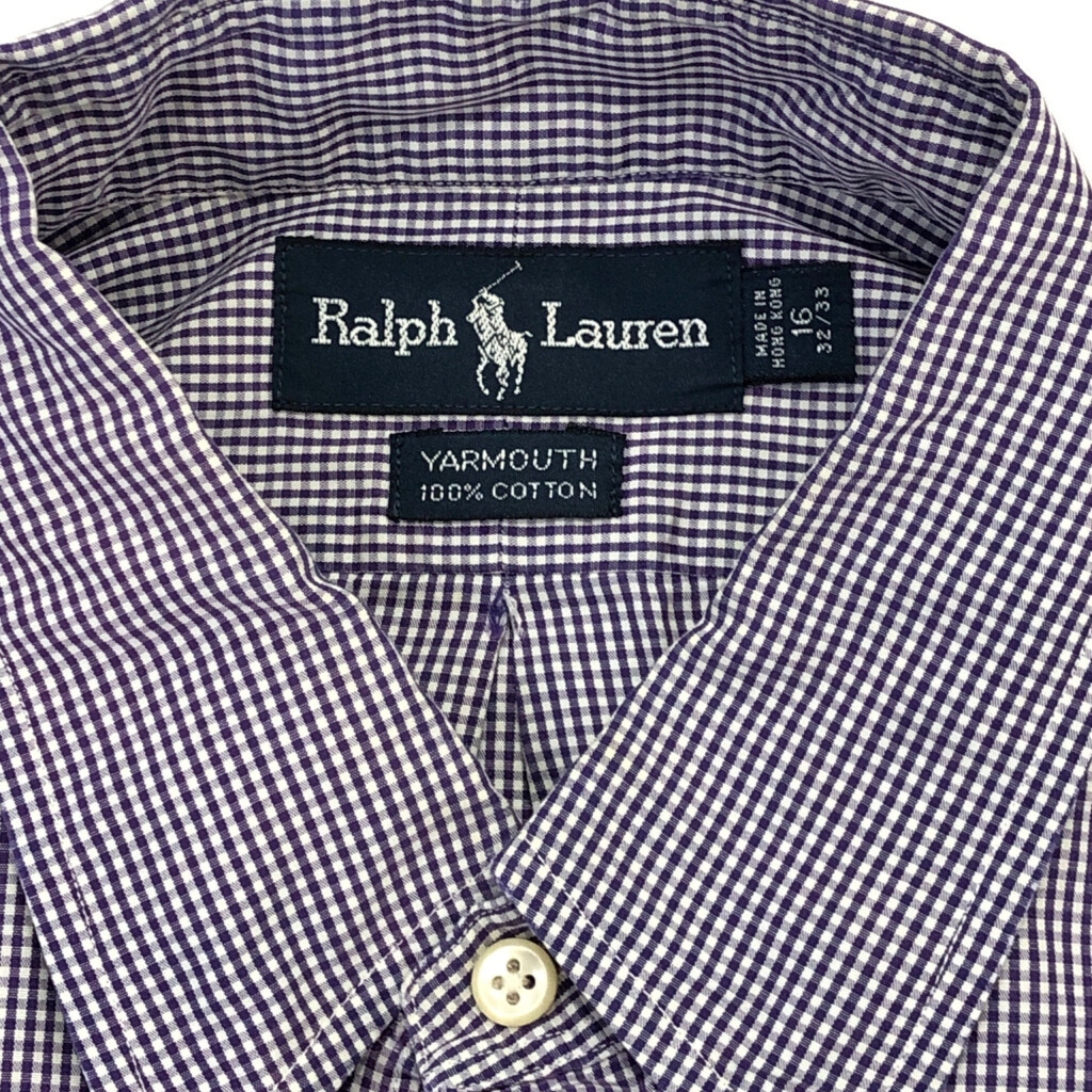 [商品管理番号] U7395 [ブランド] RALPH LAUREN/ラルフローレン [サイズ] 16 [実寸サイズ] 肩幅:約50cm 着丈:約85cm 身幅:約66cm 袖丈:約58cm [主な素材] 表地 : コットン [色] パープル [仕様] YARMOUTH ギンガムチェック [状態] 汚れ:腹部 | |||