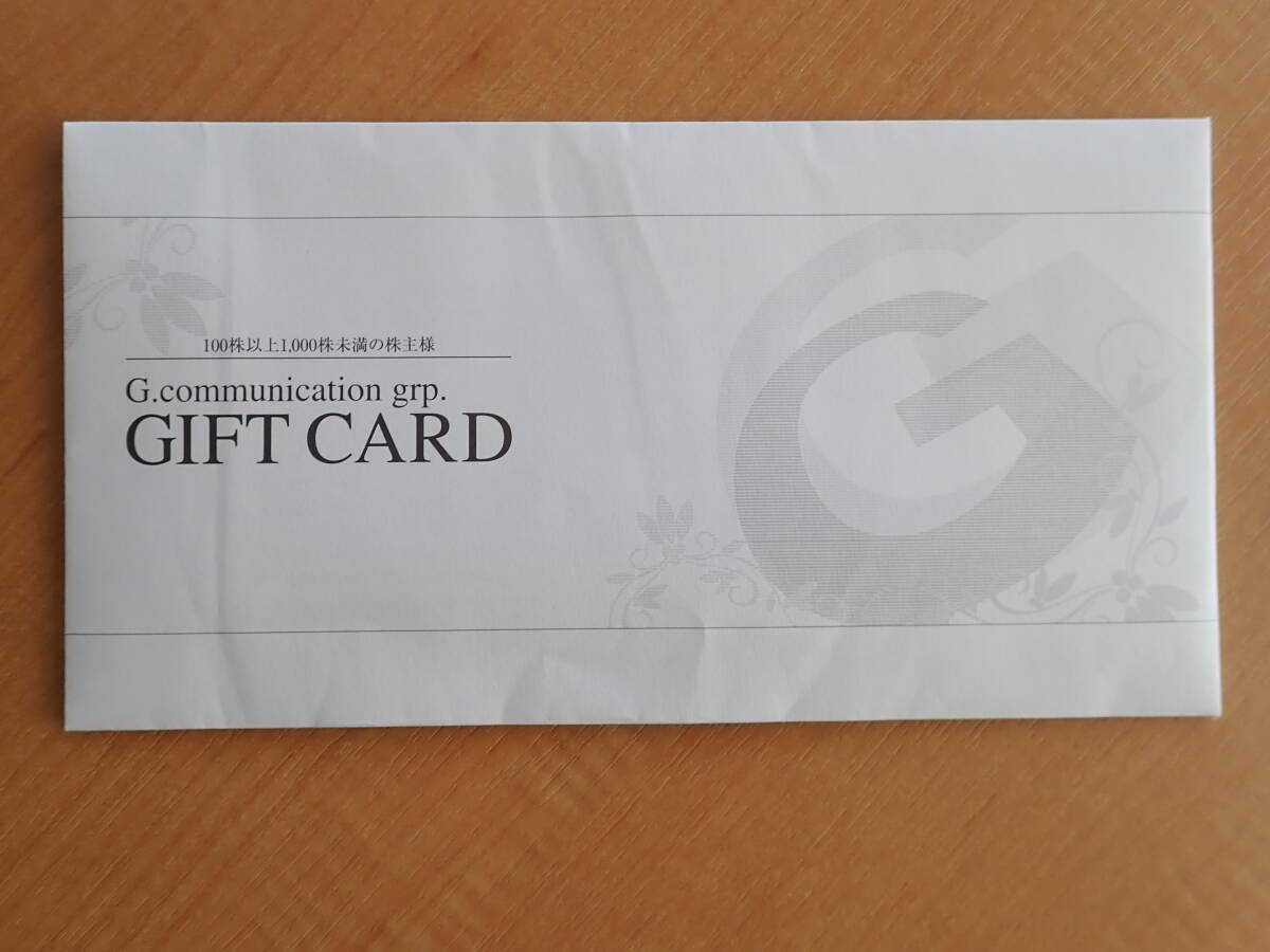 株主優待券 G.communication grp. GIFT CARD 100株以上1,000株未満の株主様 になります。