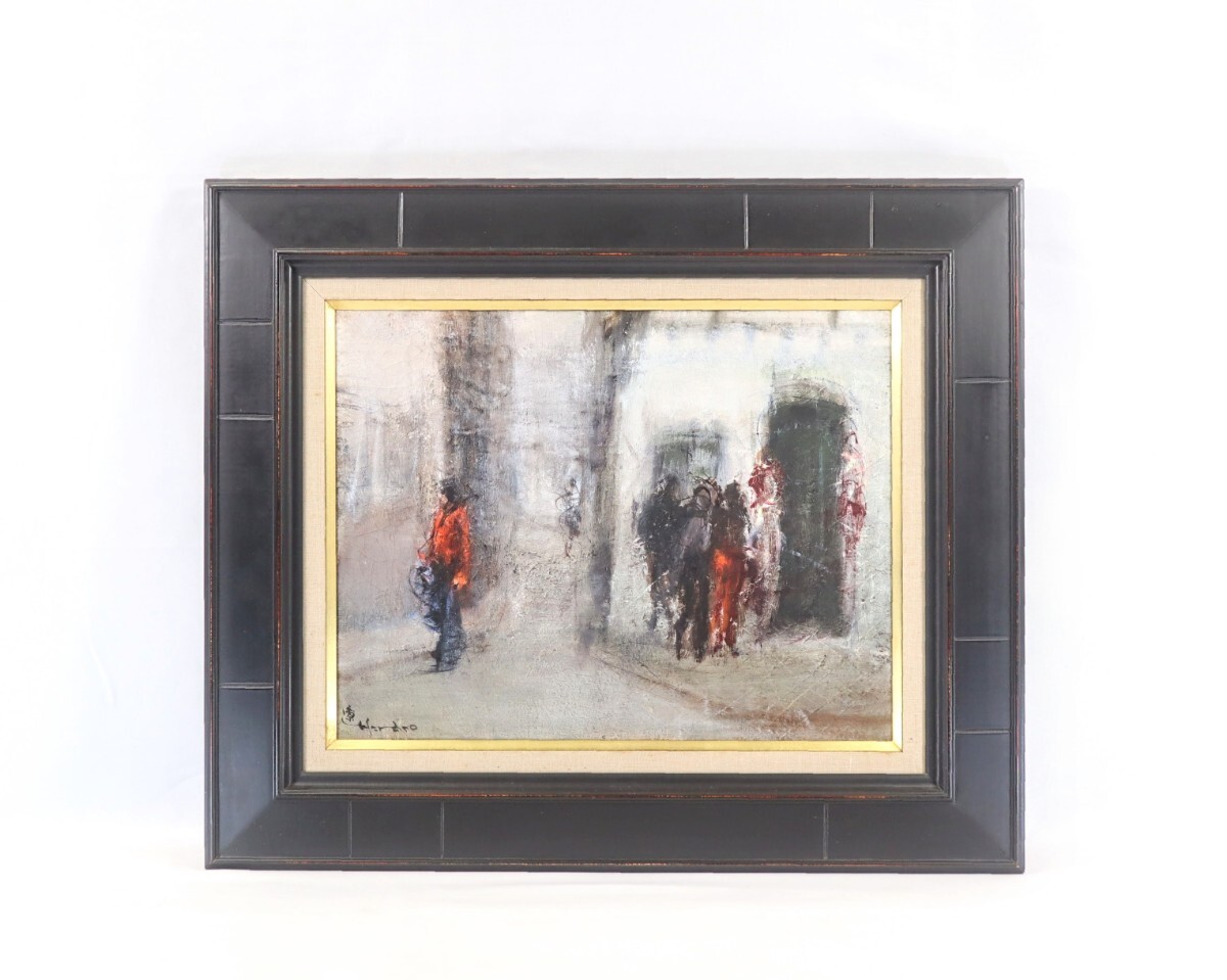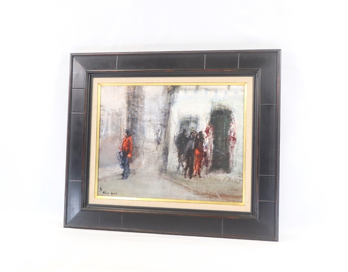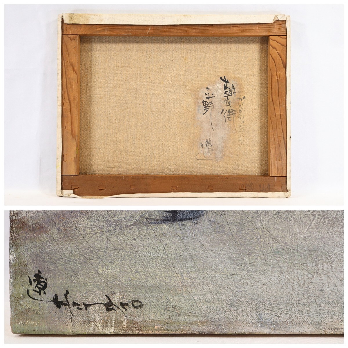 真作 平野遼 油彩「朝の街」画寸 F6 大分県出身 魂の画家 苦悩し不安に震え時に矛盾を抱え生きる人間の普遍的な心の在り様を描く 11136