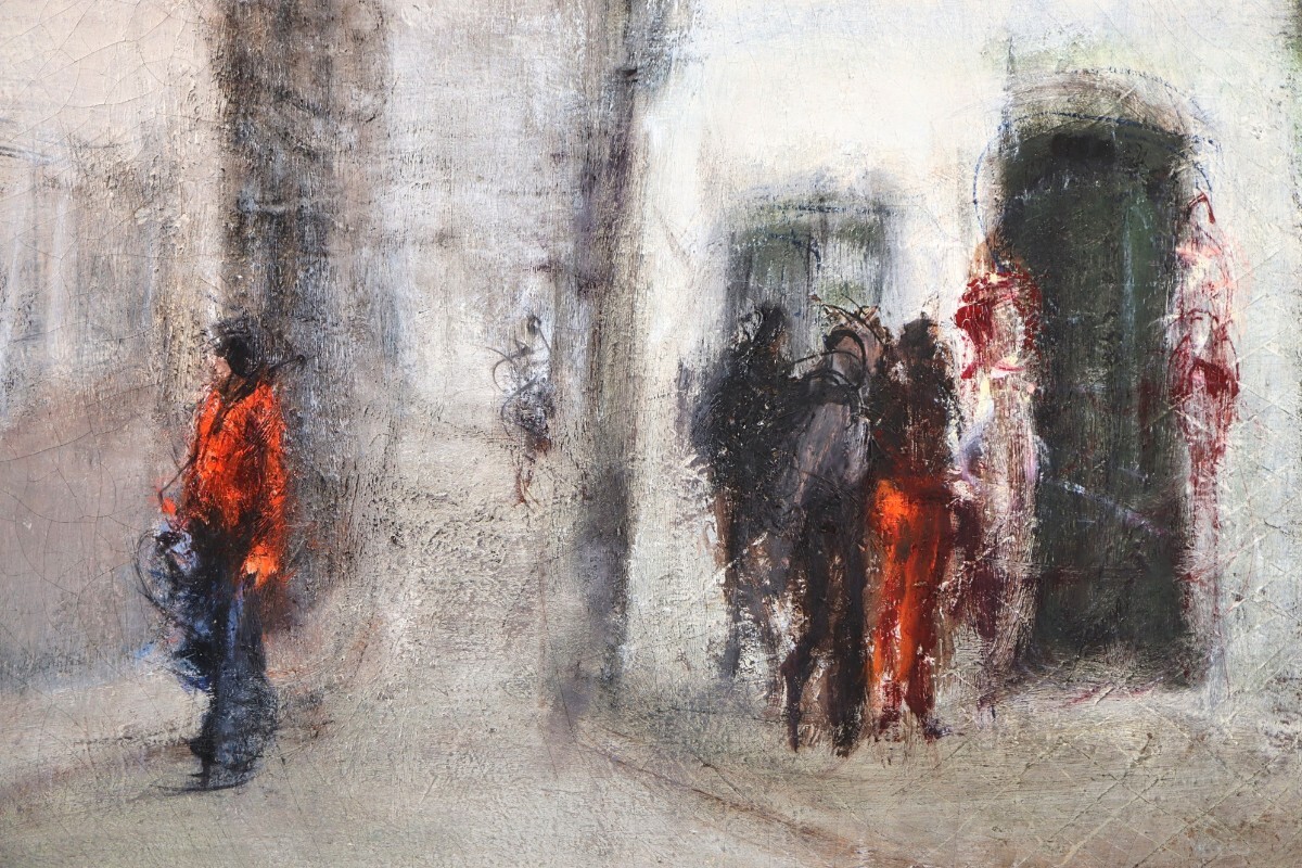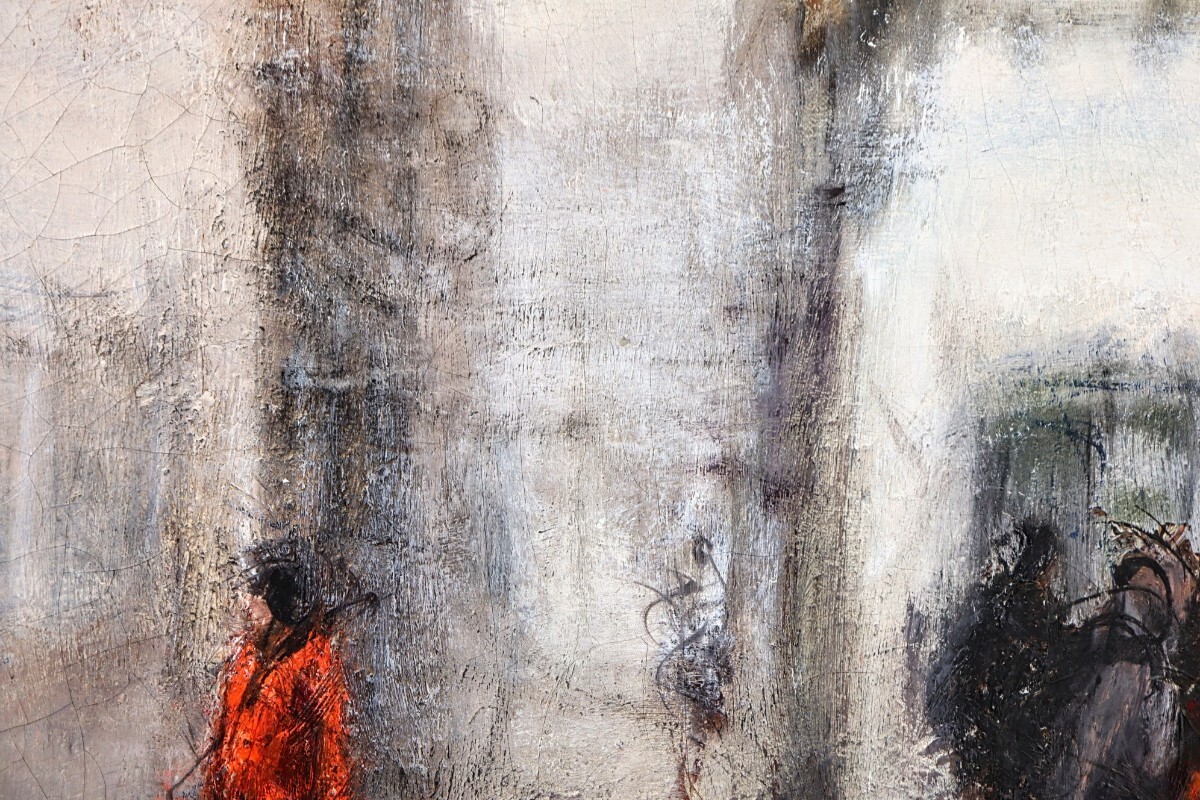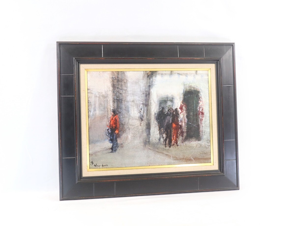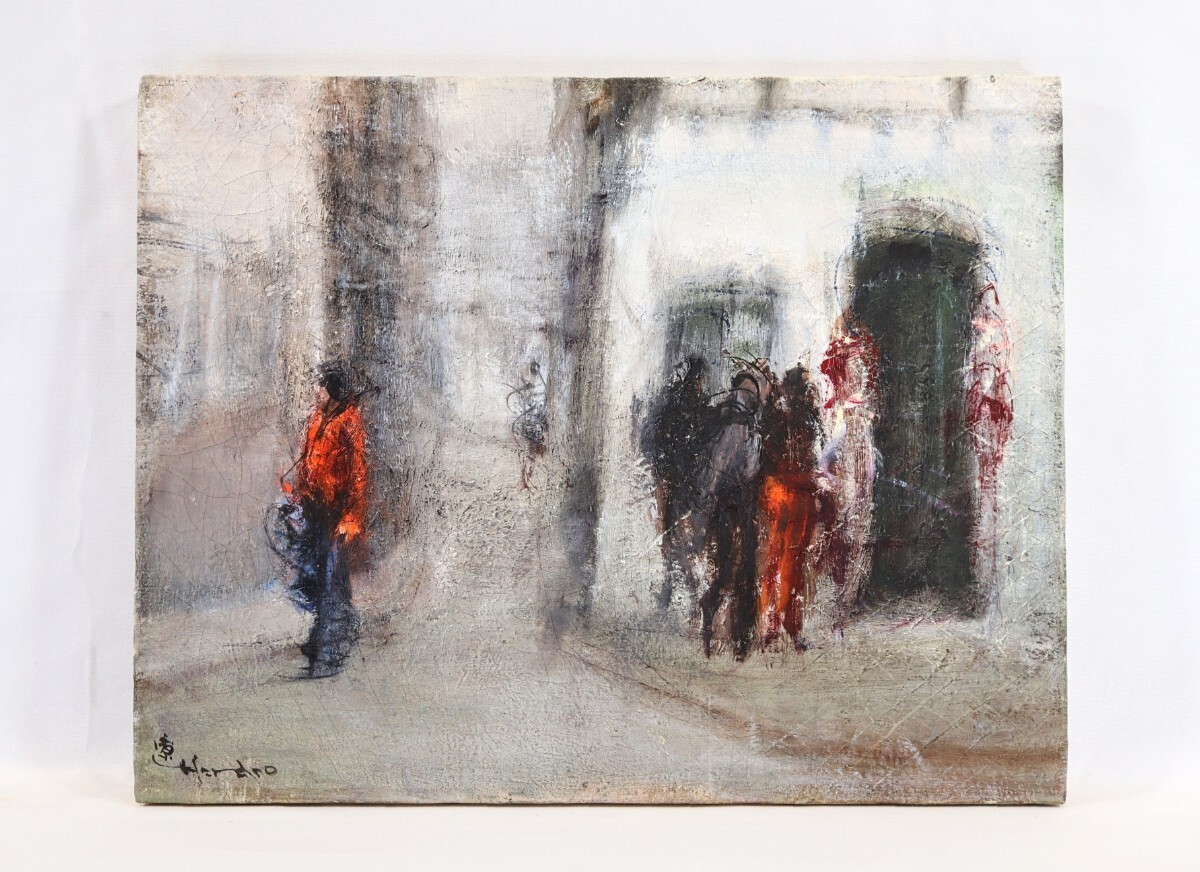 真作 平野遼 油彩「朝の街」画寸 F6 大分県出身 魂の画家 苦悩し不安に震え時に矛盾を抱え生きる人間の普遍的な心の在り様を描く 11136